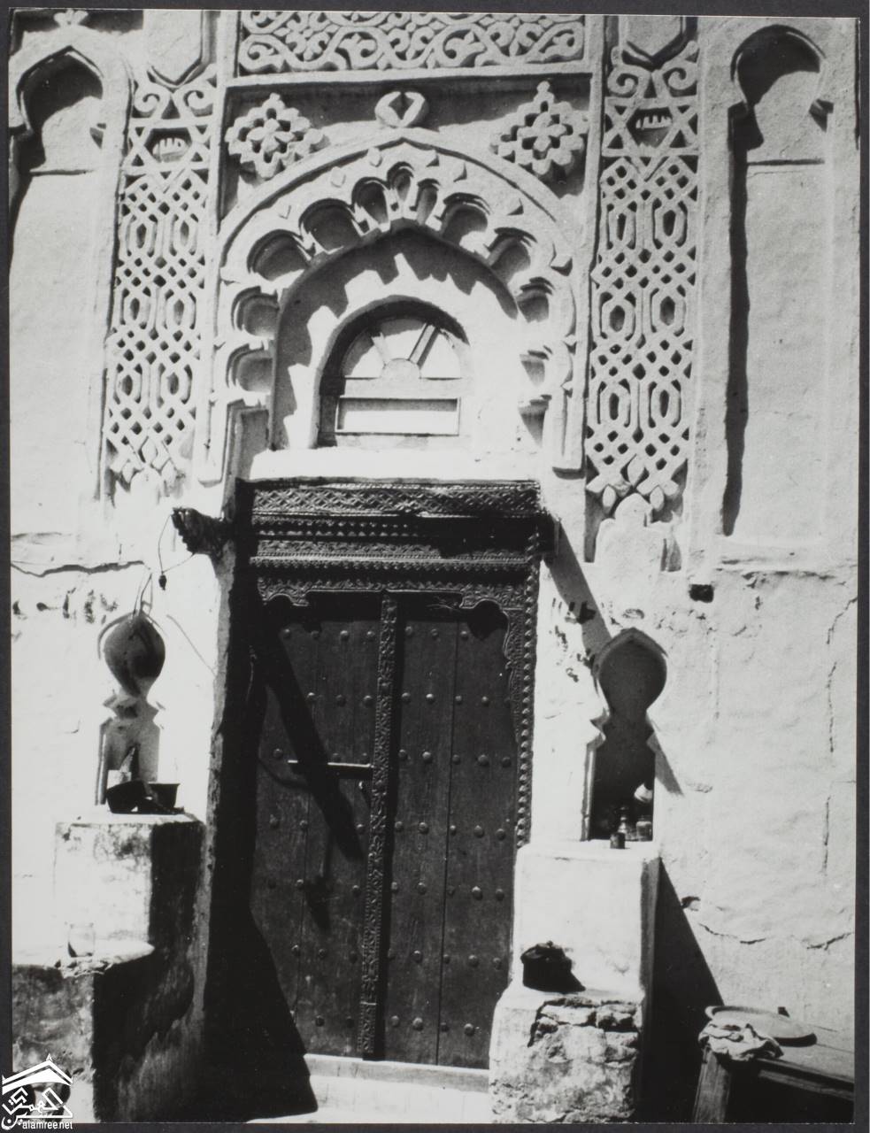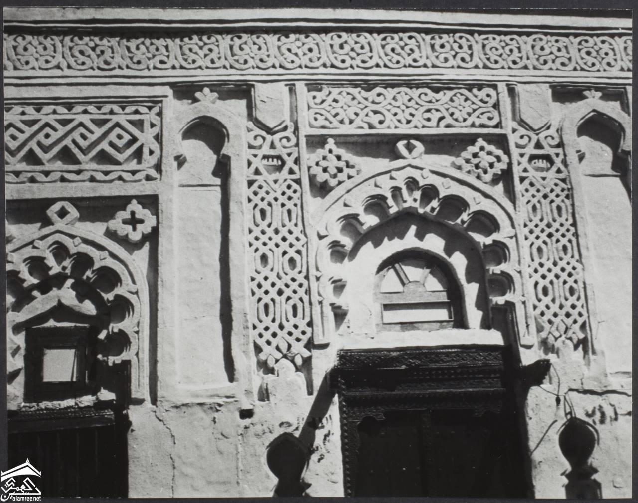"اليمن . زبيد". تفاصيل واجهة منحوتة.