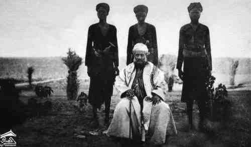 بطاقة بريدية فيها زعيم الزرانيق وحراسه الشخصيين، قرب الحديدة، في