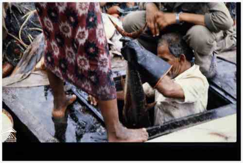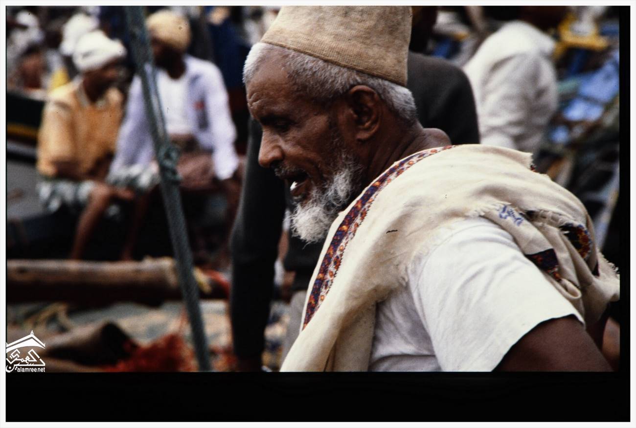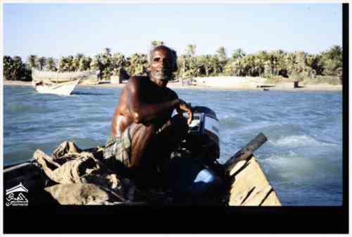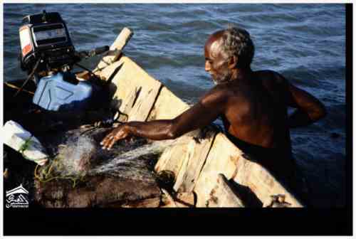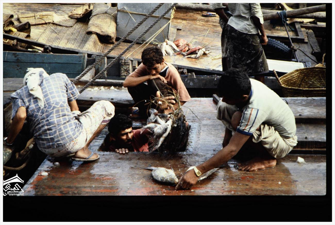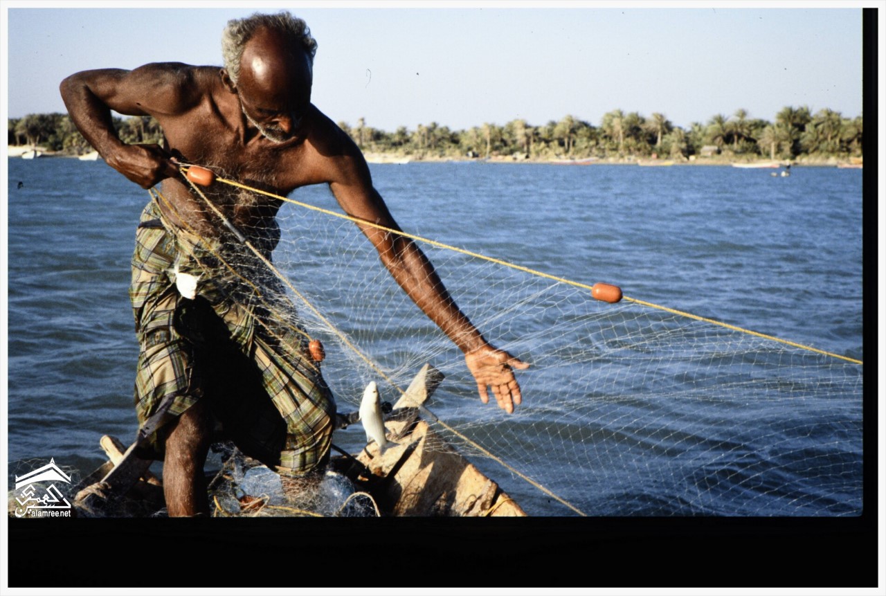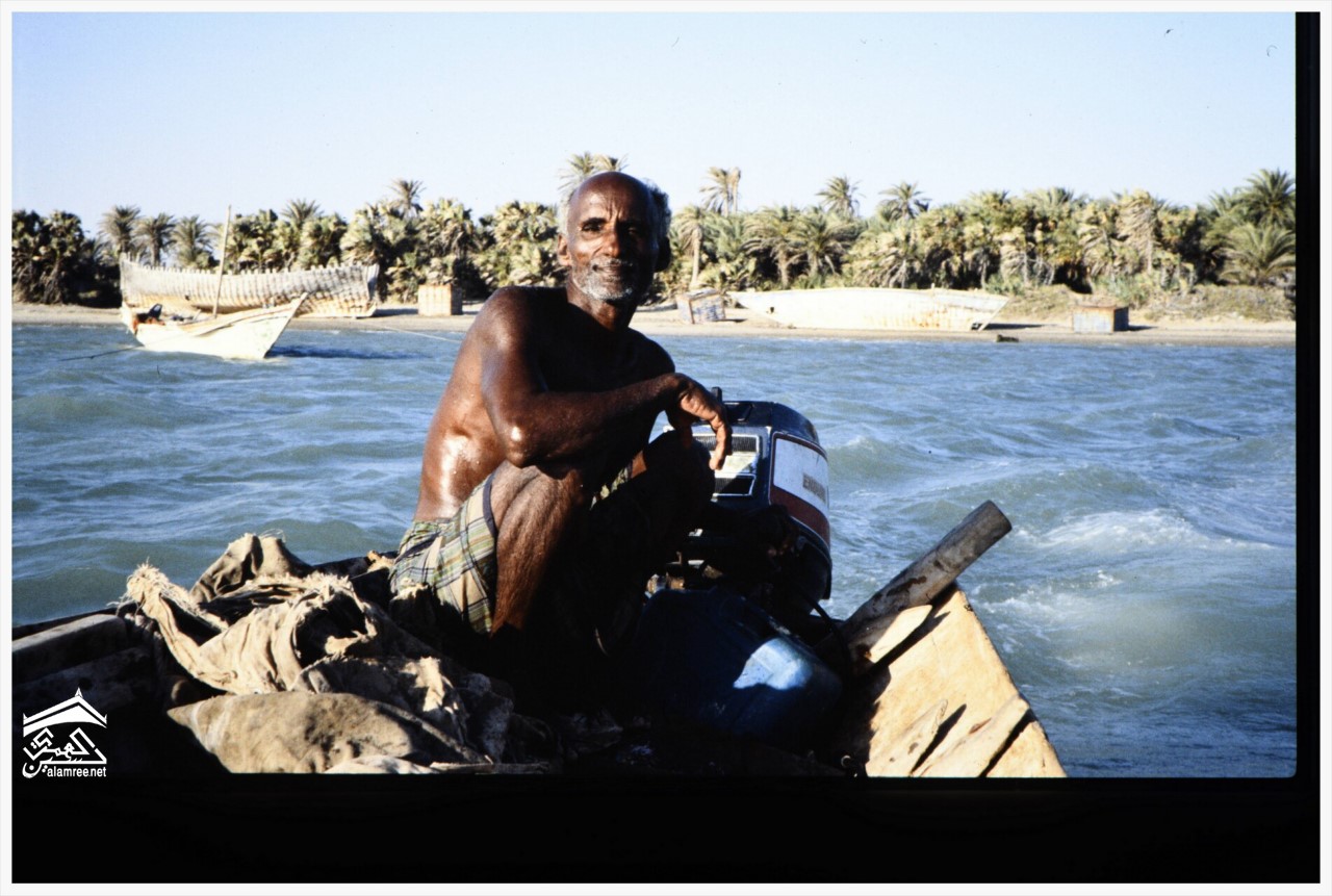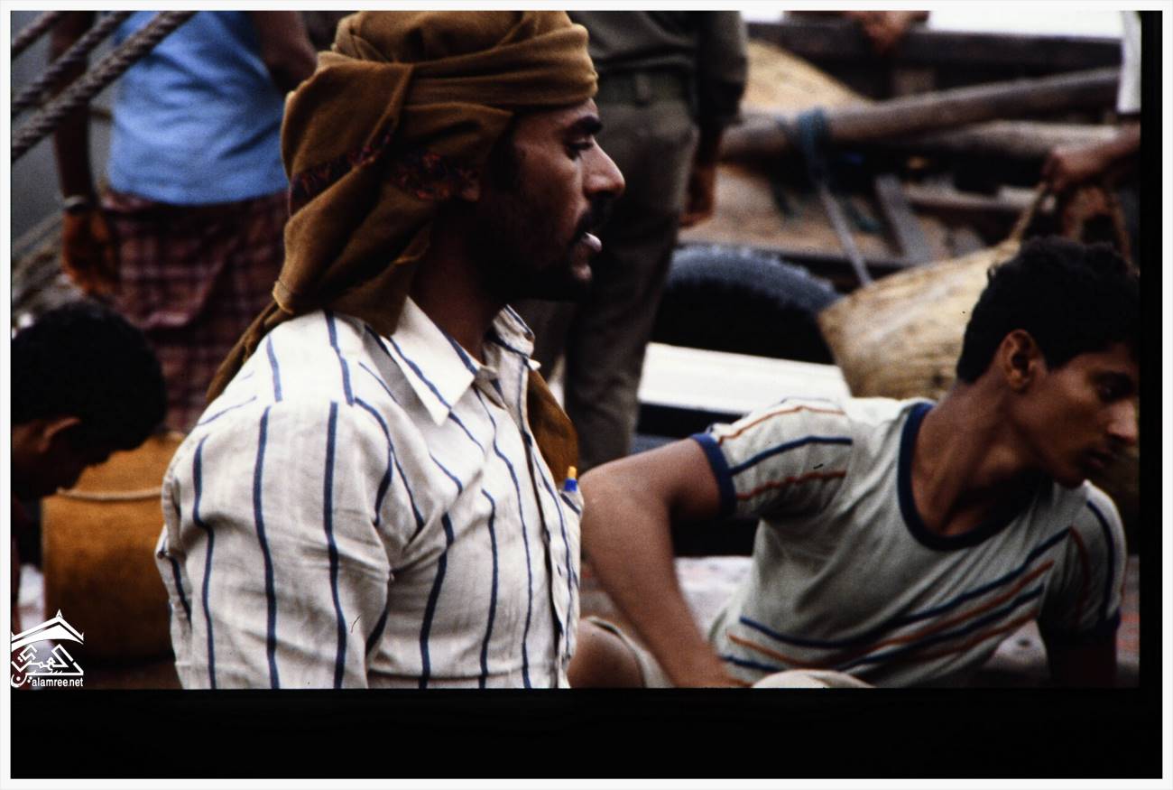 ![]() صياد على قاربه بالقرب من احد شواطئ الحديده في ثمانينيات القرن الماضي |