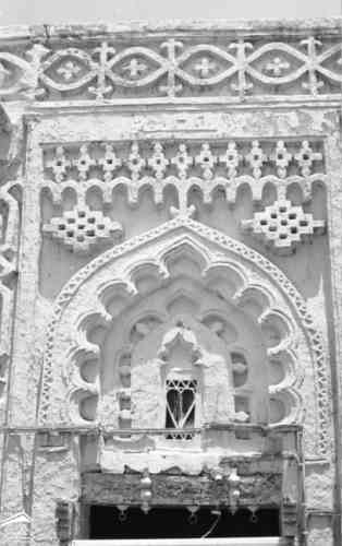 واجهة اعلى الباب مزخرفة بزخارف جصية زبيد ثمانينات القرن الماضي ، للمزيد من الصور من زبيد انقر هنا