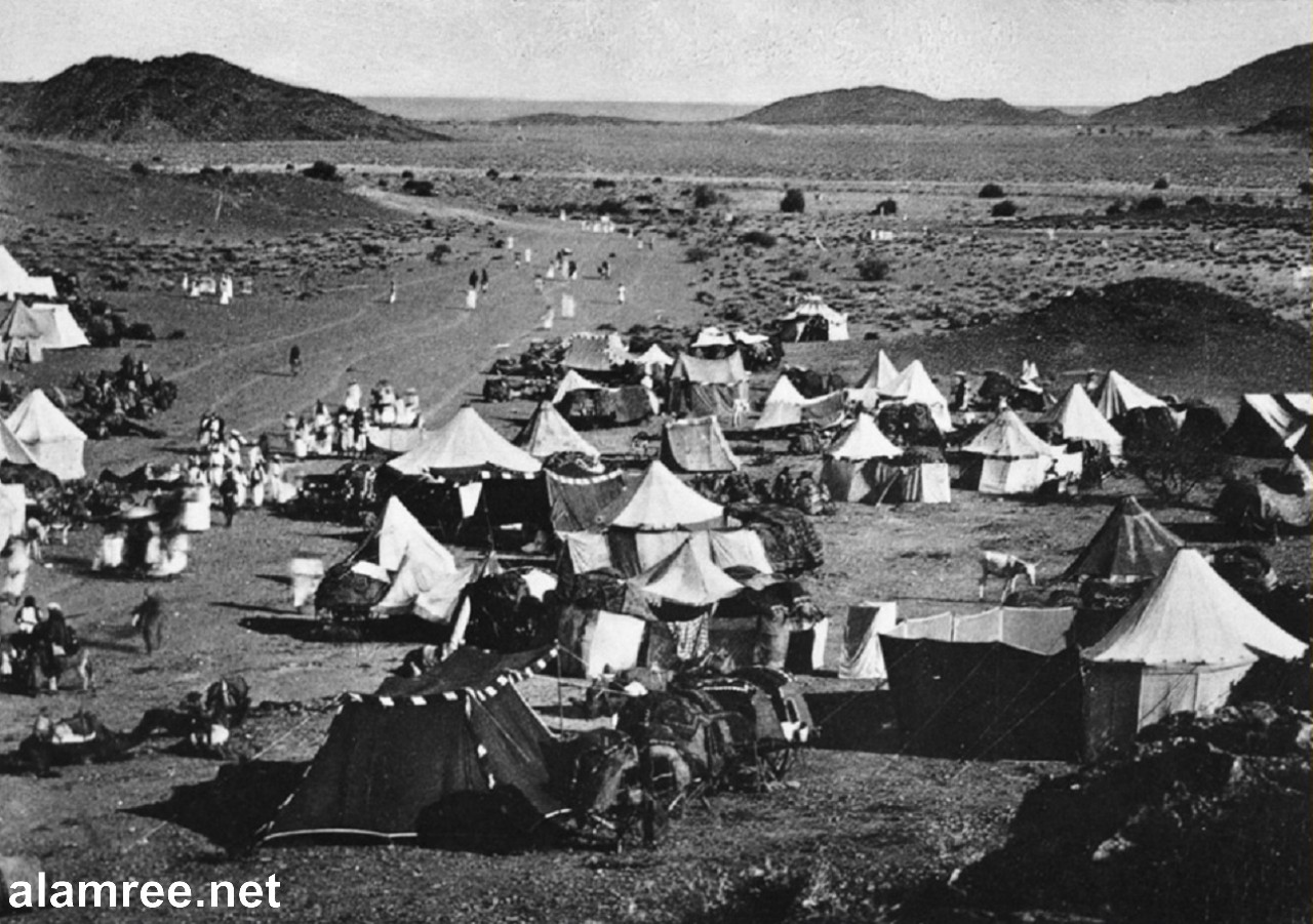 صل الله عليه وعلى اله وسلم ومخيم لمن سافر إلى هناك من حجيج مكة