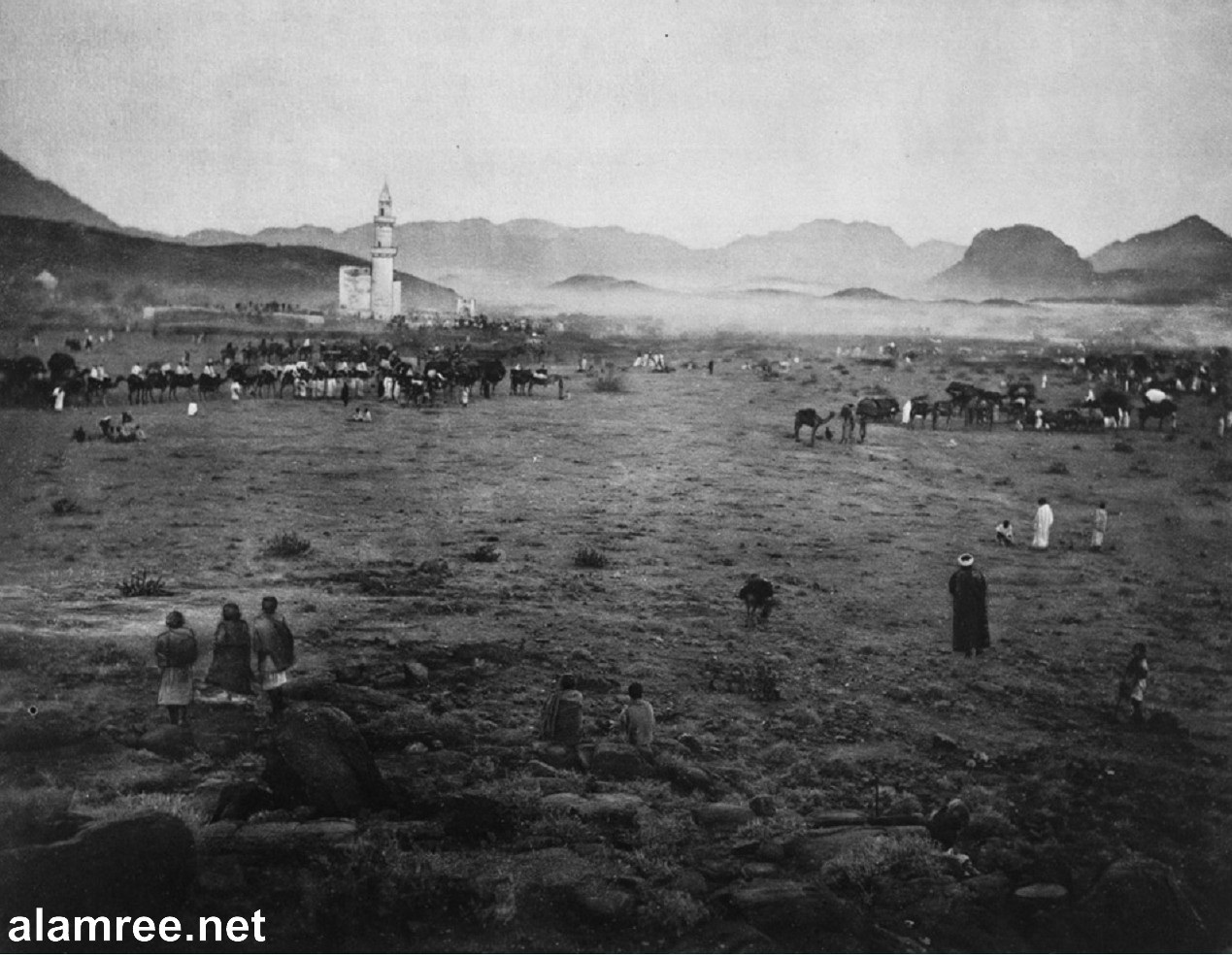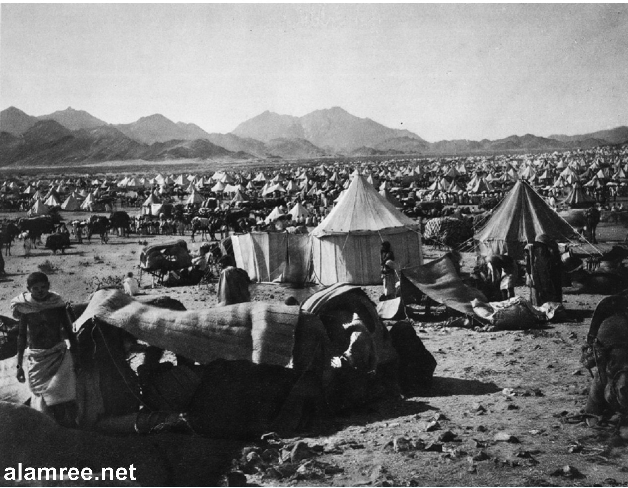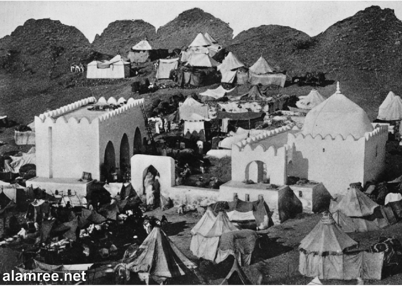 صل الله عليه وعلى اله وسلم ومخيم لمن سافر إلى هناك من حجيج مكة.