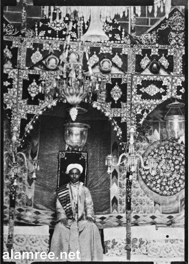 لقطتان مختلفتان للأريكة، مجلس العرش، التي تجلس عليها العروس البكر في ليلة الدُخلة عام 1888