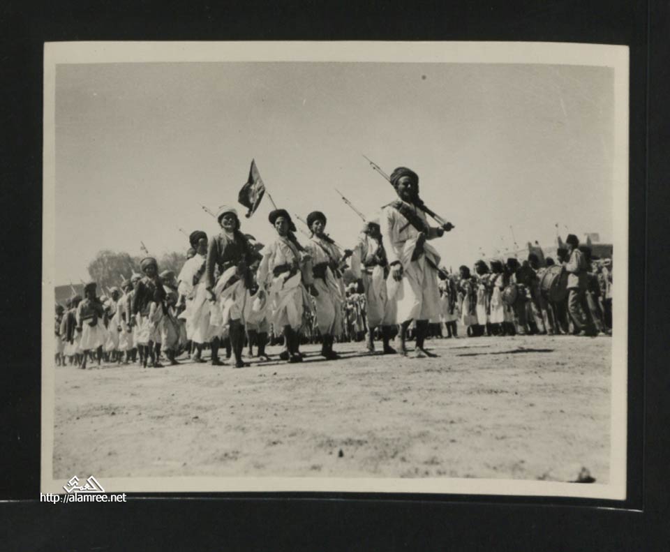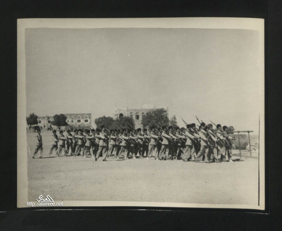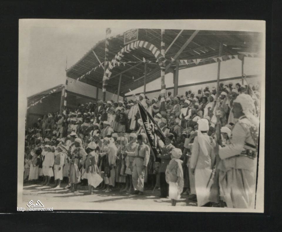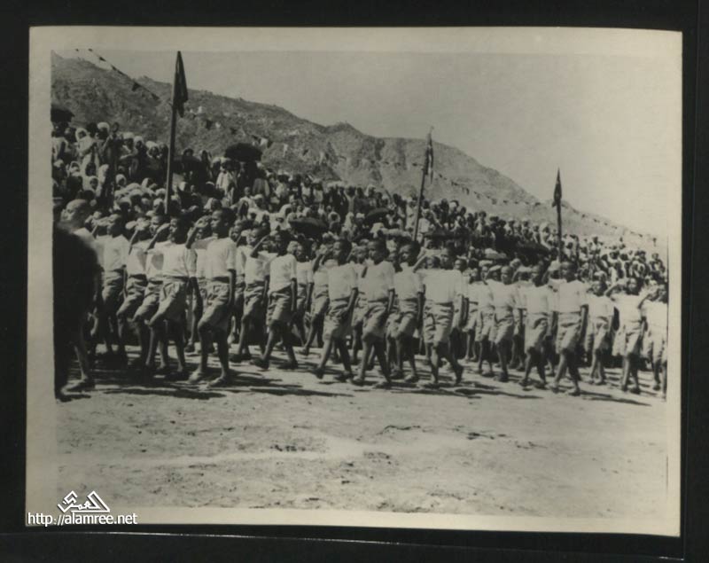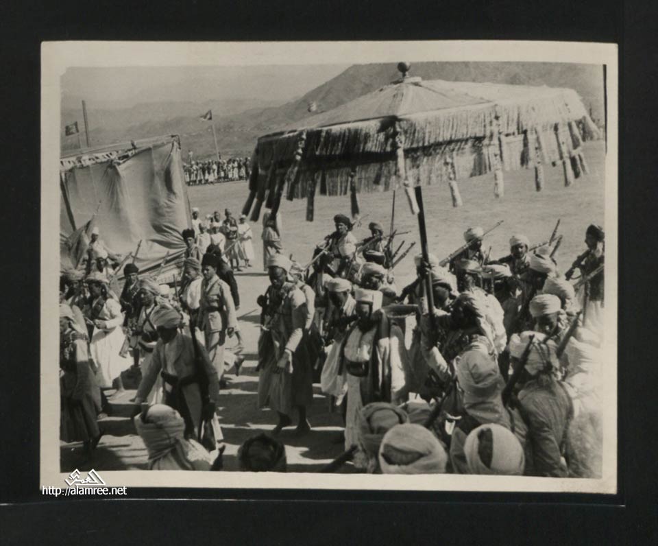 وصول الامام احمد الى منصة العرض العسكري في تعز عام 1952 |