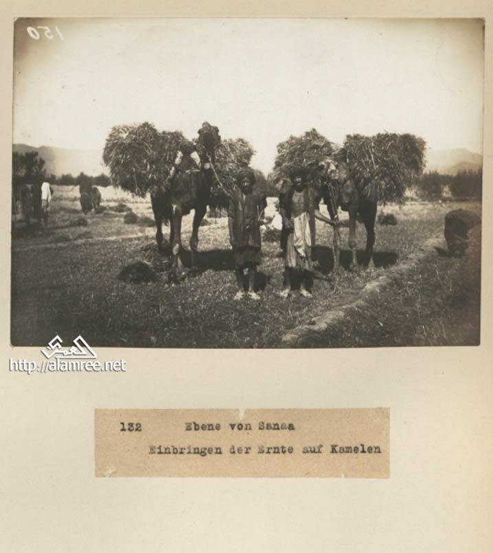 ![]() صنعاء بداية القرن الماضيم جلب الحصاد على ظهور الابل |