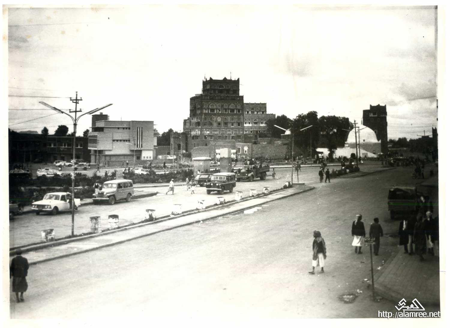 صنعاء شارع التحرير عام 1967م وقصر البشائر سابق في منتصف الصوره