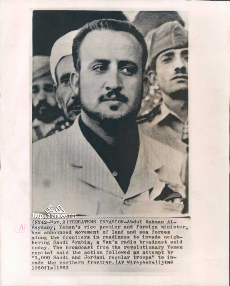 الرئيس عبدالله السلال رئيس الجمهوريه الفتيه ونائبه عبدالرحمن البيضاني صنعاء 16 اكتوبر 1962