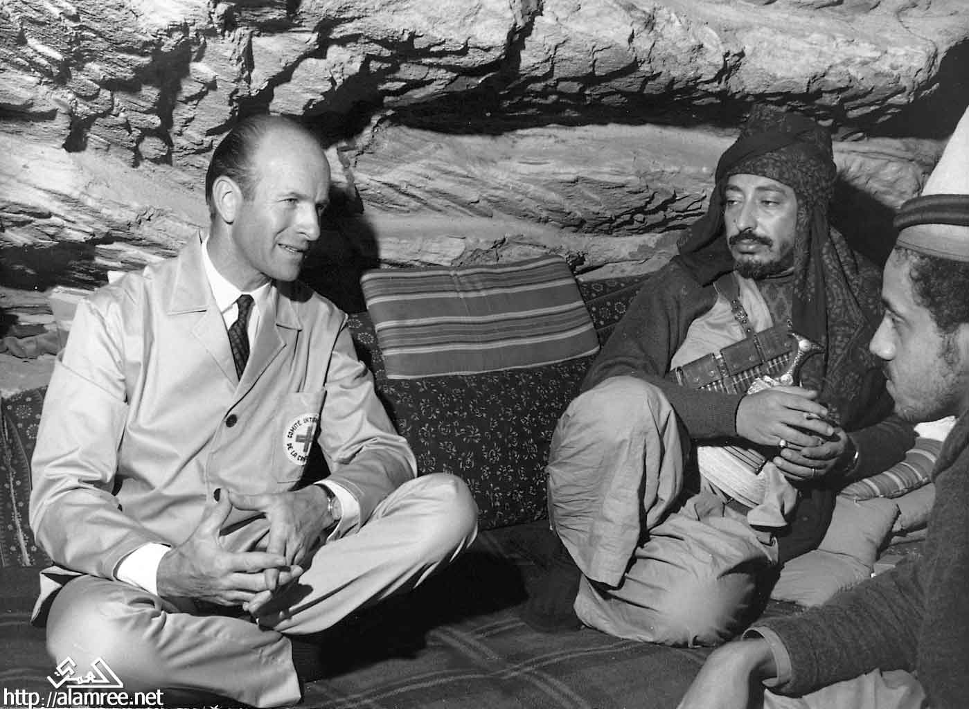 مندوب منظمة الصليب الاحمر اندريه روشيه يزور الامير محمد البدر في الجبال المحصن فيها لمناقشة الخروقات التي مارسها طرفي الحرب
