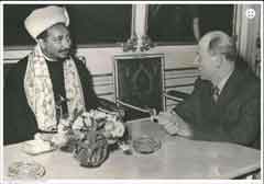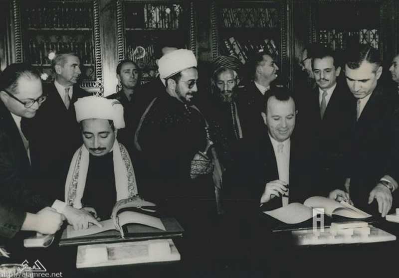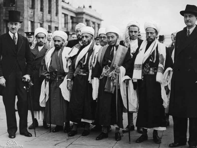 القاهره عام 1952م رئيس زراء اليمن يصافح السفير البريطاني في القاهره