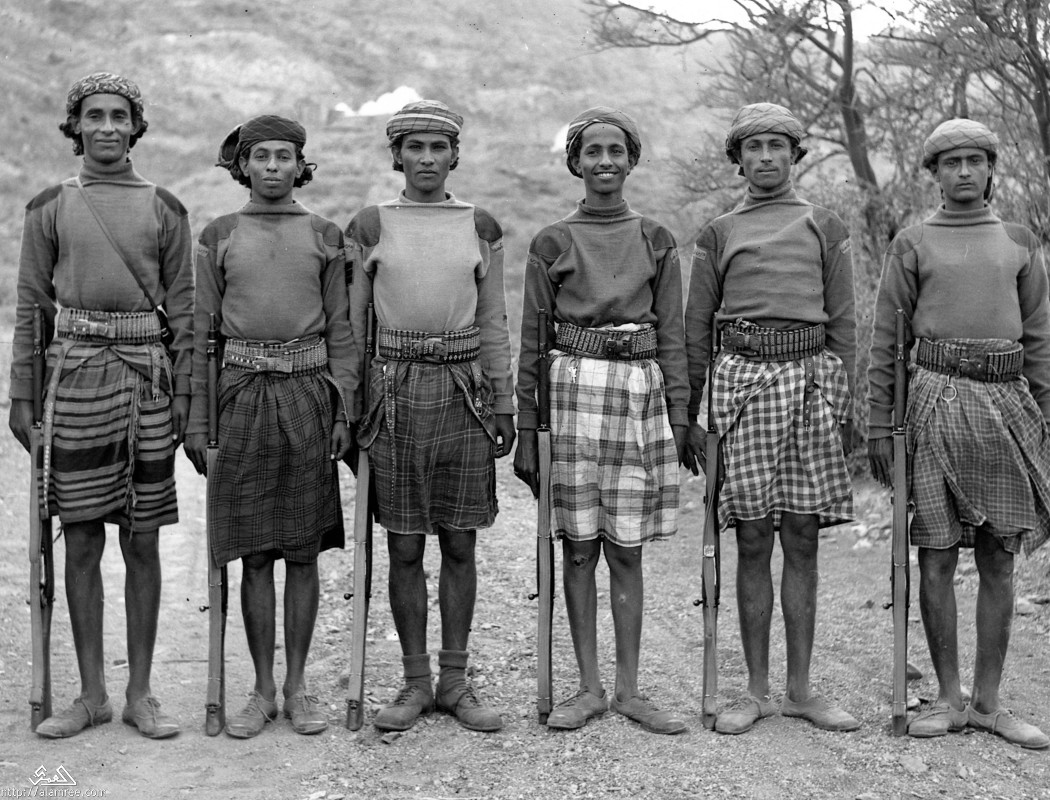 ![]() تم إنشاء قوات الحرس الحكومي في1/4/1938من قبل الضابط السياسي “هاميلتون”. وقد صار أفراد تلك القوة يسمون باسمه: “عسكر هاميلتون” حتى خلفه الضابط السياسي “شبرد” فسميت القوة باسمه، وكذلك المعسكر:”معسكر شبرد”. كان ذلك بعد عام من قرار الحكومة البريطانية تقسيم الجنوب اليمني إلى: محميات شرقية وأخرى غربية” وللمزيد من صور الحرس الحكومي زور البوم التاريخ العسكري لليمن منذ انشاء اول كتيبة يمنيه 1918م بالنقر هنا ، |