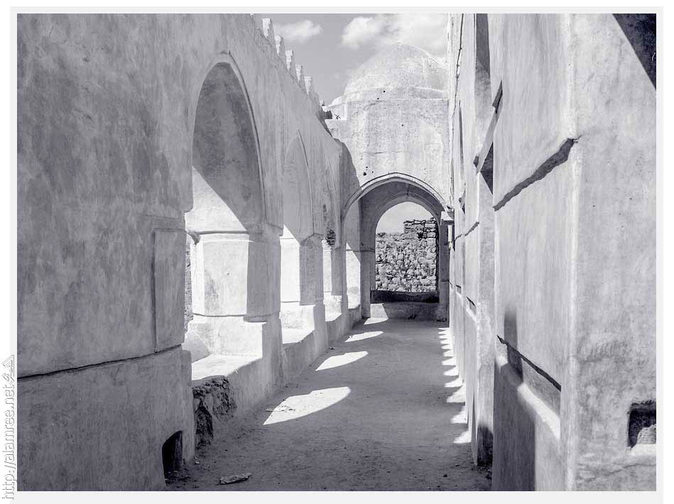 والمئذنتان تقعان في مؤخرة المسجد واحدة في