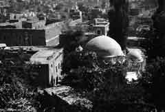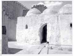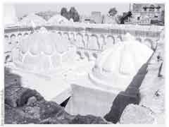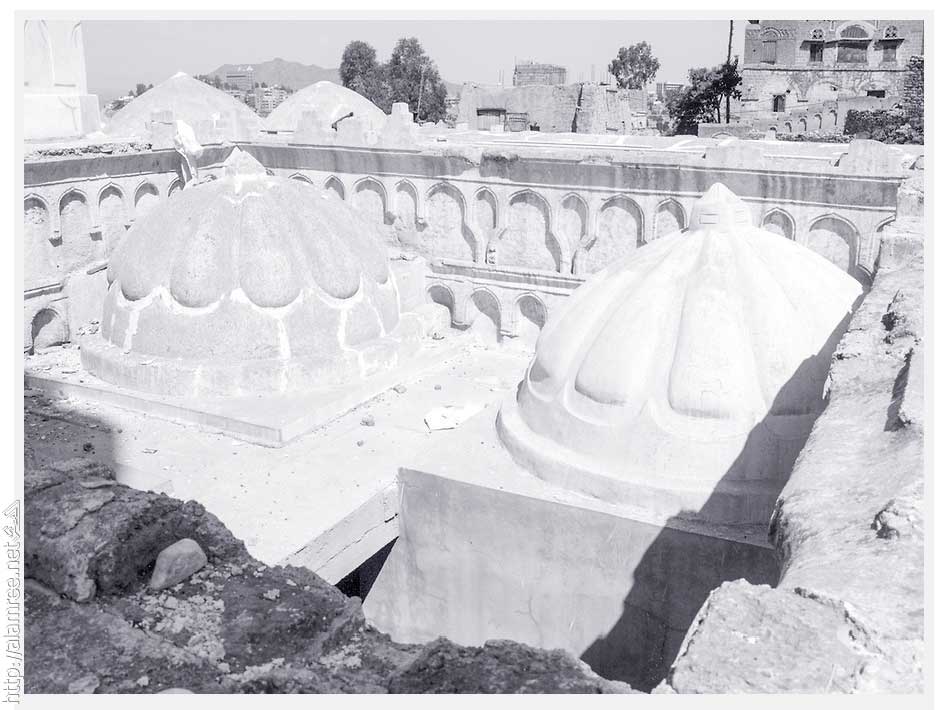 بين المئذنتين عدد من القباب الكبار