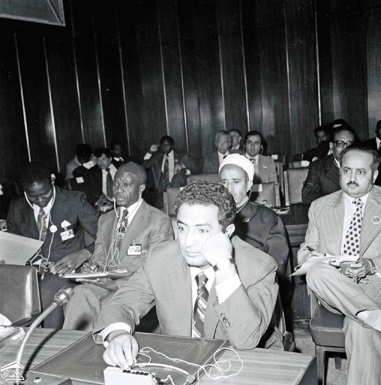 صورة لعبدالله عبدالمجيد الاصنج و....... خلف الرئيس اليمني ابراهيم محمد الحمدي في المؤتمر العربيص الافريقي |