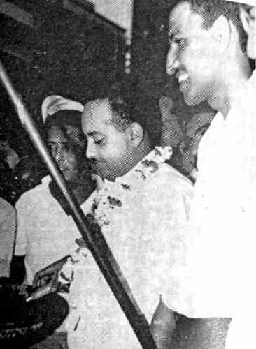 حجر الاساس لمبنى المؤتمر العمالي الجديد في المعلا عدن مايو 1963م |