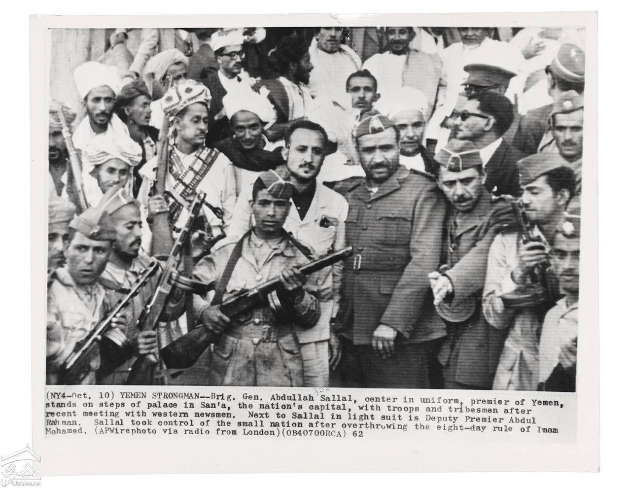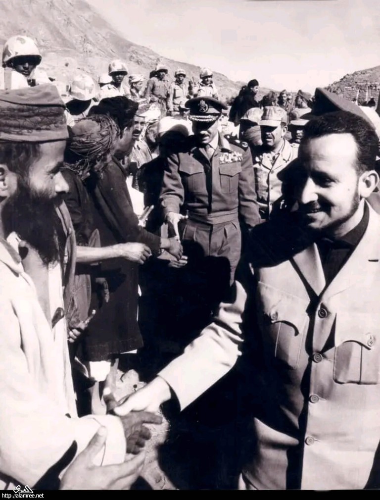 ![]() صورة تجمع الرئيس السلال ونائب الرئيس المصري انور السادات وكذا نائب الرئيس اليمني عبدالرحمن البيضاني في صنعاء تاريخ 16اكتوبر 1962م |