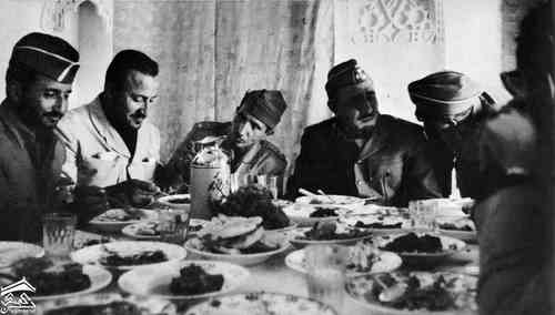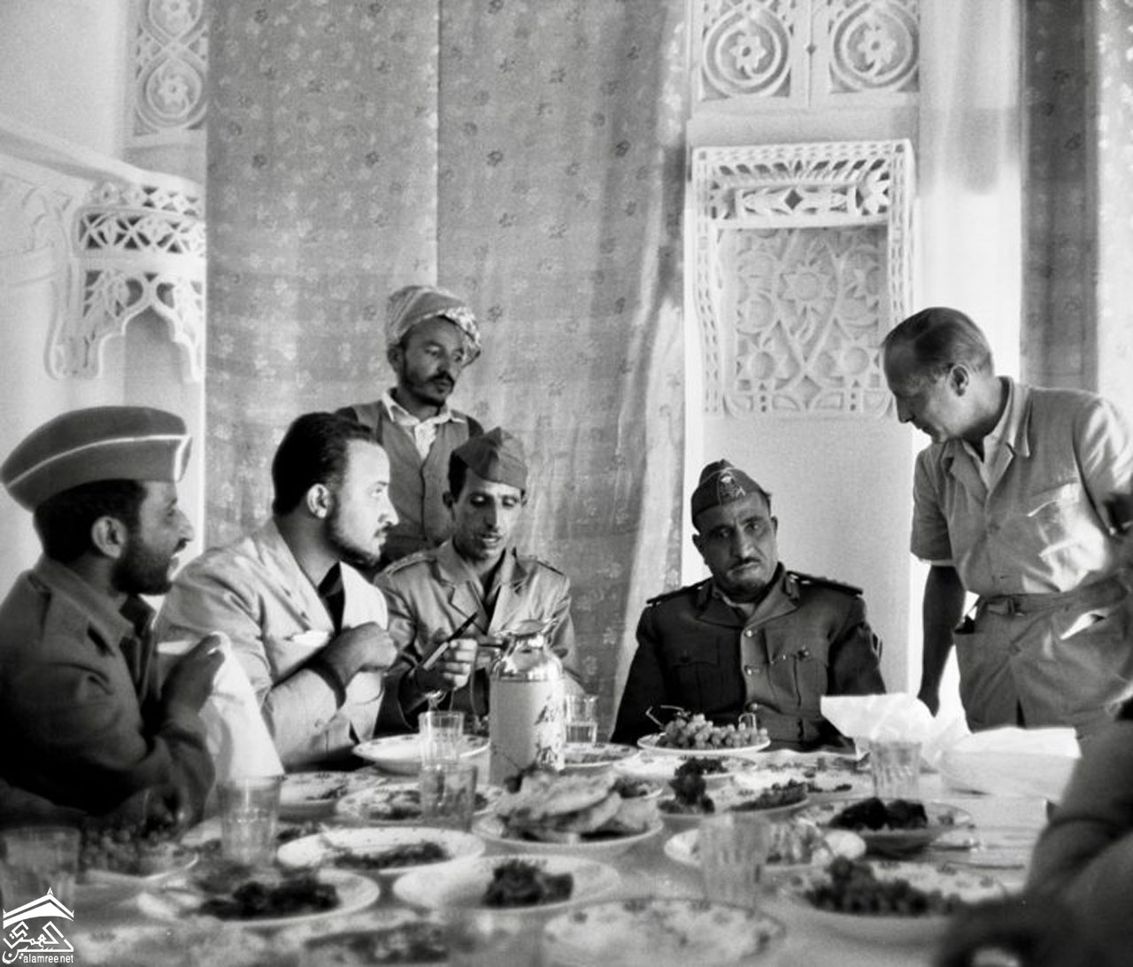 ![]() عبدالله السلال وحسن العمري وعبدالرحمن البيضاني على مائدة طعام في مجلس قيادة الثورة عام 1963م |