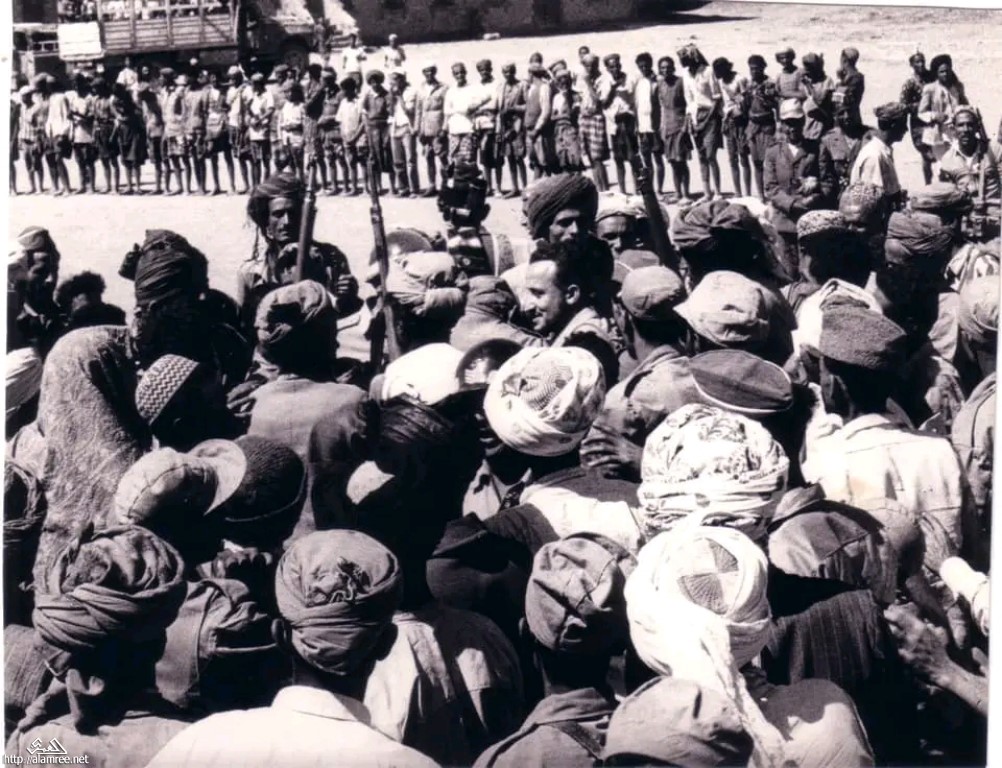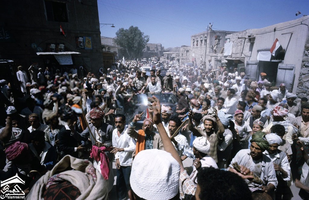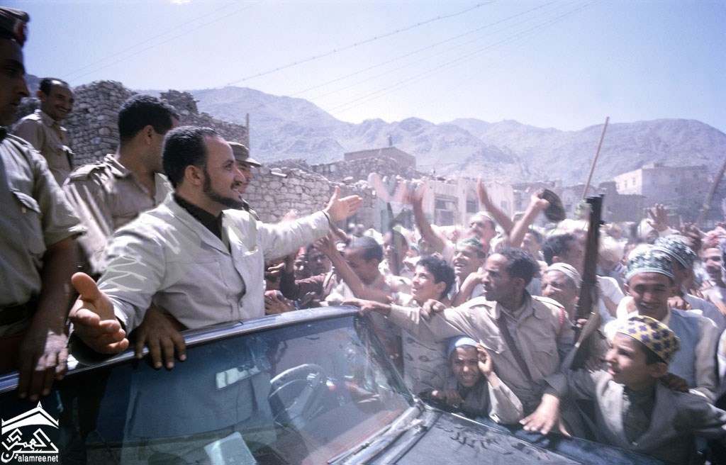 ![]() ائب رئيس مجلس الوزراء الدكتور عبد الرحمن البيضاني ، المؤيد ناصر ، تلقى ترحيبا حارا في تعز ، في محاولة لكسب الدعم للثورة. في سبتمبر 1962 |