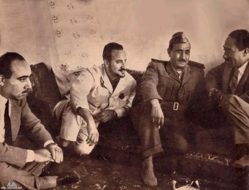 البيضاني والزبيري وسيف- الإسلام الحسن بن يحيى وعلي-المؤيد في القاهرة، ١٩٥٣م |