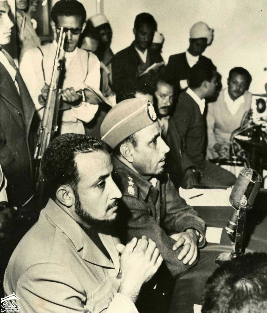 ![]() عبدالرحمن البيضان وعبدالله السلال في احد المؤتمرات الصحفيه في الايام الاولى للثورة |