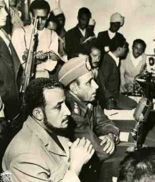 اليمني عبدالله السلال وبجابنة نائبة الدكتور عبدالرحمن البيضاني وعدد من ثوار ستمبر الصورة في 7 اكتوبر 1963م |