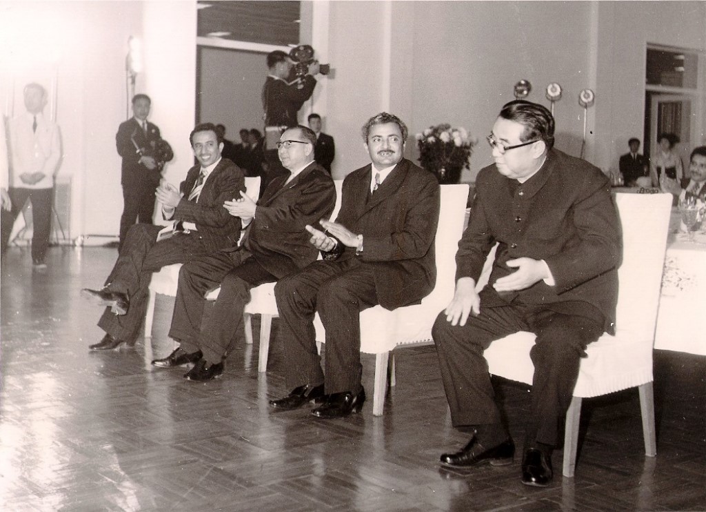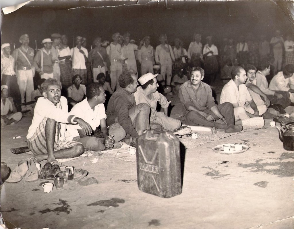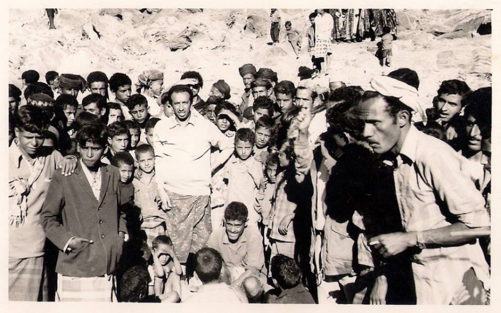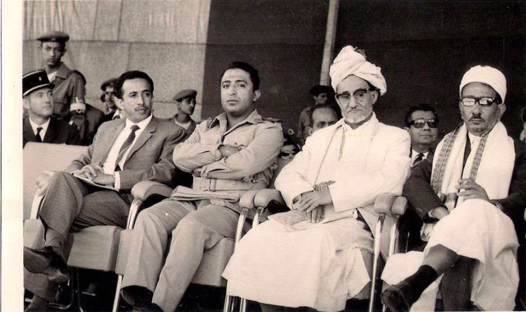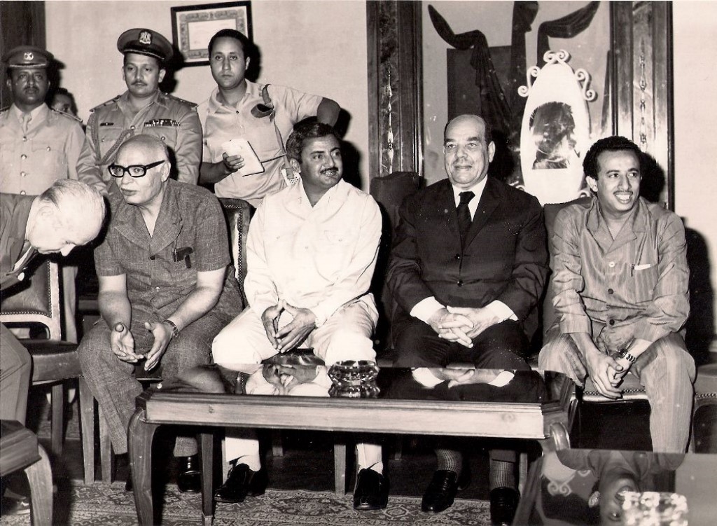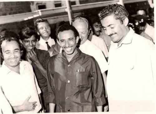 الشيخ زايد في عدن مع الرئيس سالمين وجواره الشهيد مطيع والشيخ مكتوم آل مكتوم وعبدالعزيز عبدالولي