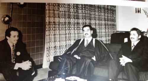 صالح مطيع مع صدام حسين والرئيس سالم ربيع