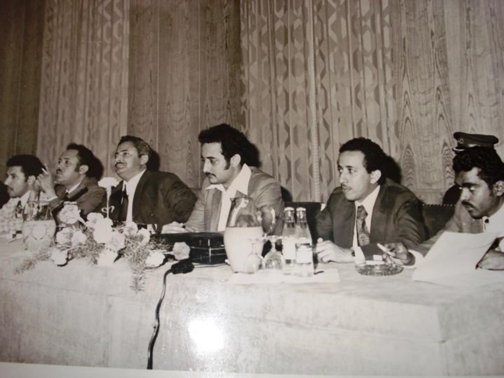 علي ، رئيس المجلس الرئاسي لليمن الديمقراطي. يظهر هنا وفد اليمن الديمقراطي برئاسة