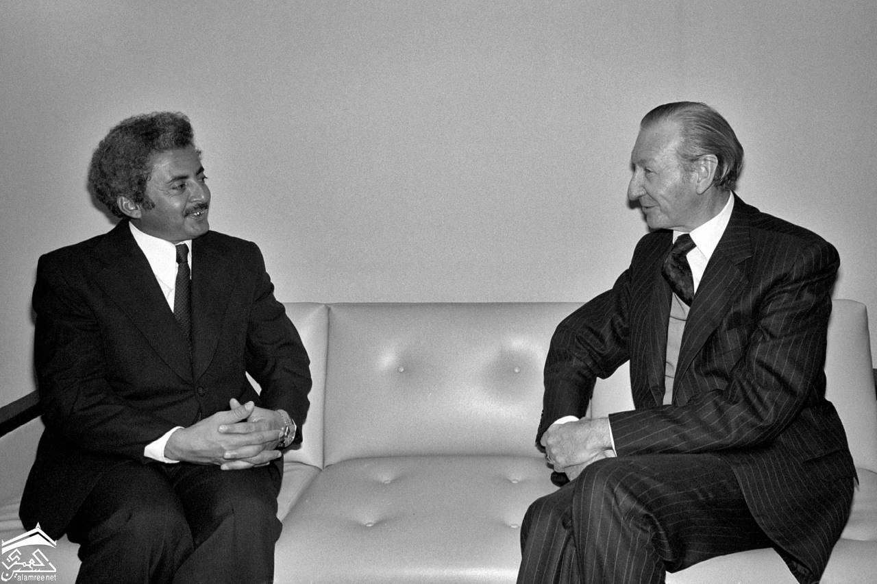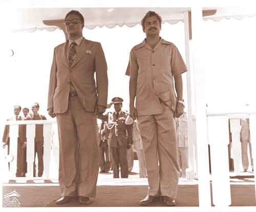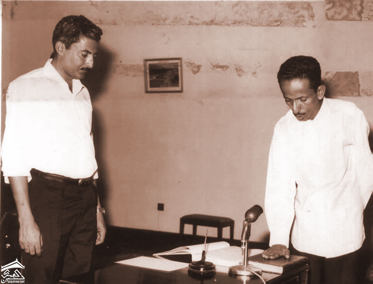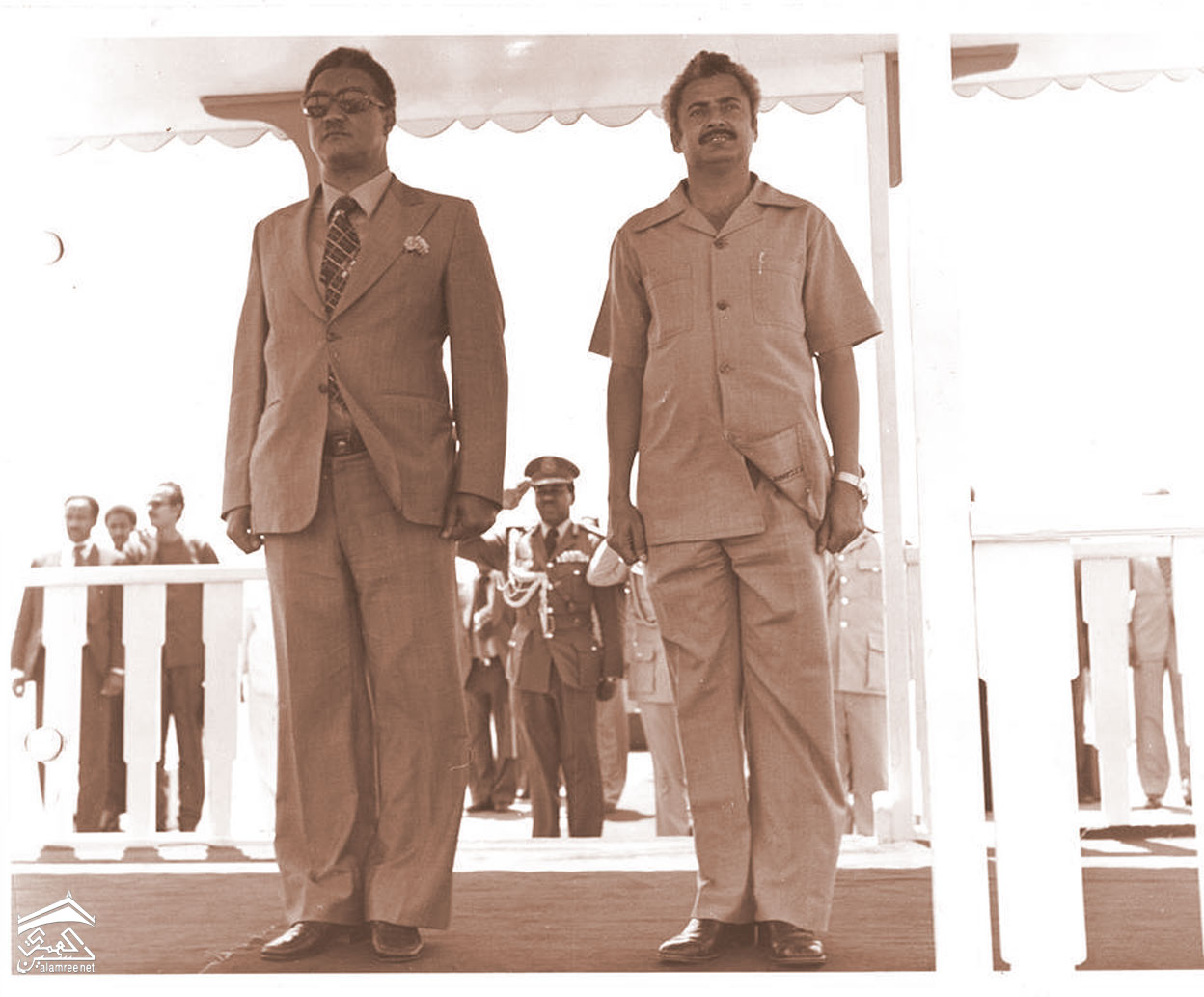 االرئيس سالم ربيع علي والرئيس الحمدي في احد اللقاءات في سبعينيات القرن الماضي