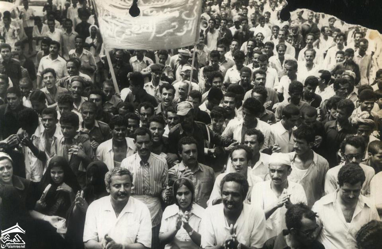 من يسار المشاهد علي ناصر محمد الشيخ عبدالله حاتم ، سالم ربيع علي ، عبدالفتاح اسماعيل في وقفة صمت امام النصب التذكاري للشهداء في التواهي عدن