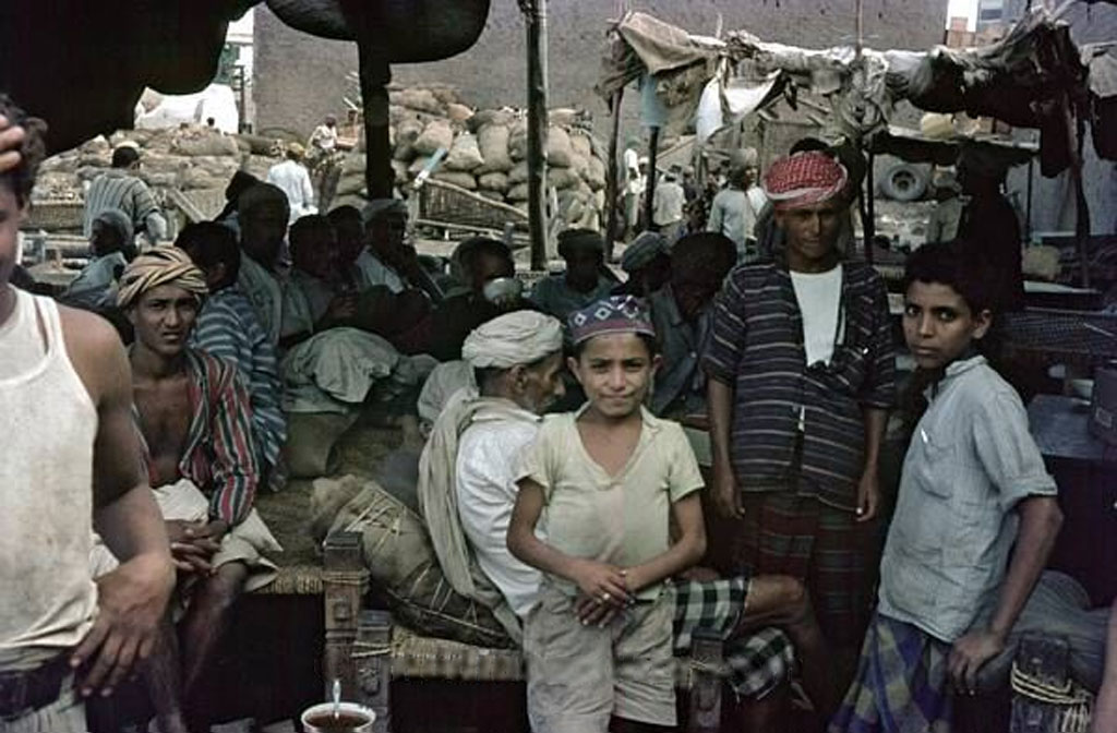 ميناء عدن وعمال الميناء على إحدى العوامات التي