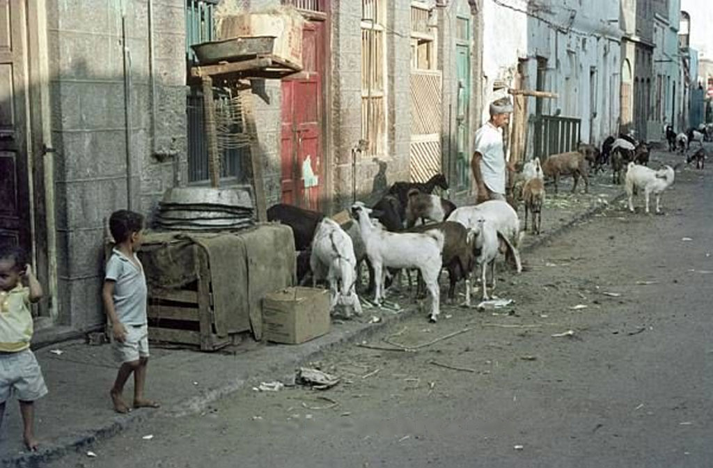 احدى حواري عدن التواهي وقد كان مالوفا وجود الاغنام