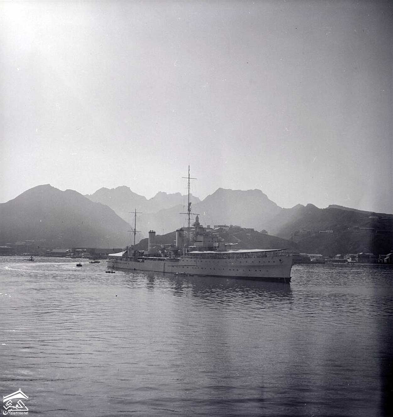 احدى السفن الحربية راسية قبالة التواهي ، في ميناء عدن عام 1930م |