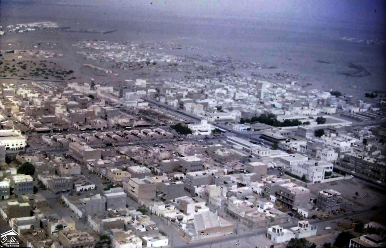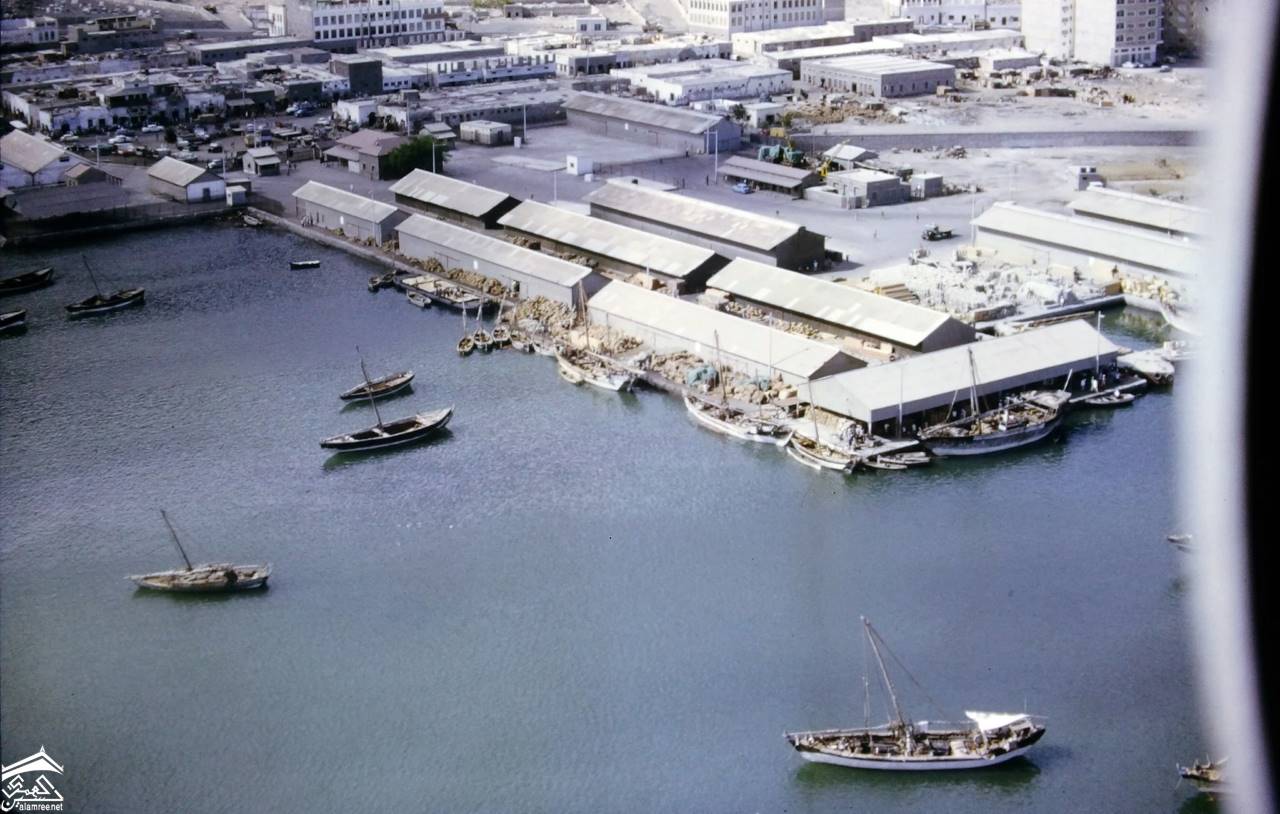 صورة جوية لاجزاء من منطقة جبل حديد ومركز صناعة السفن الشراعية في