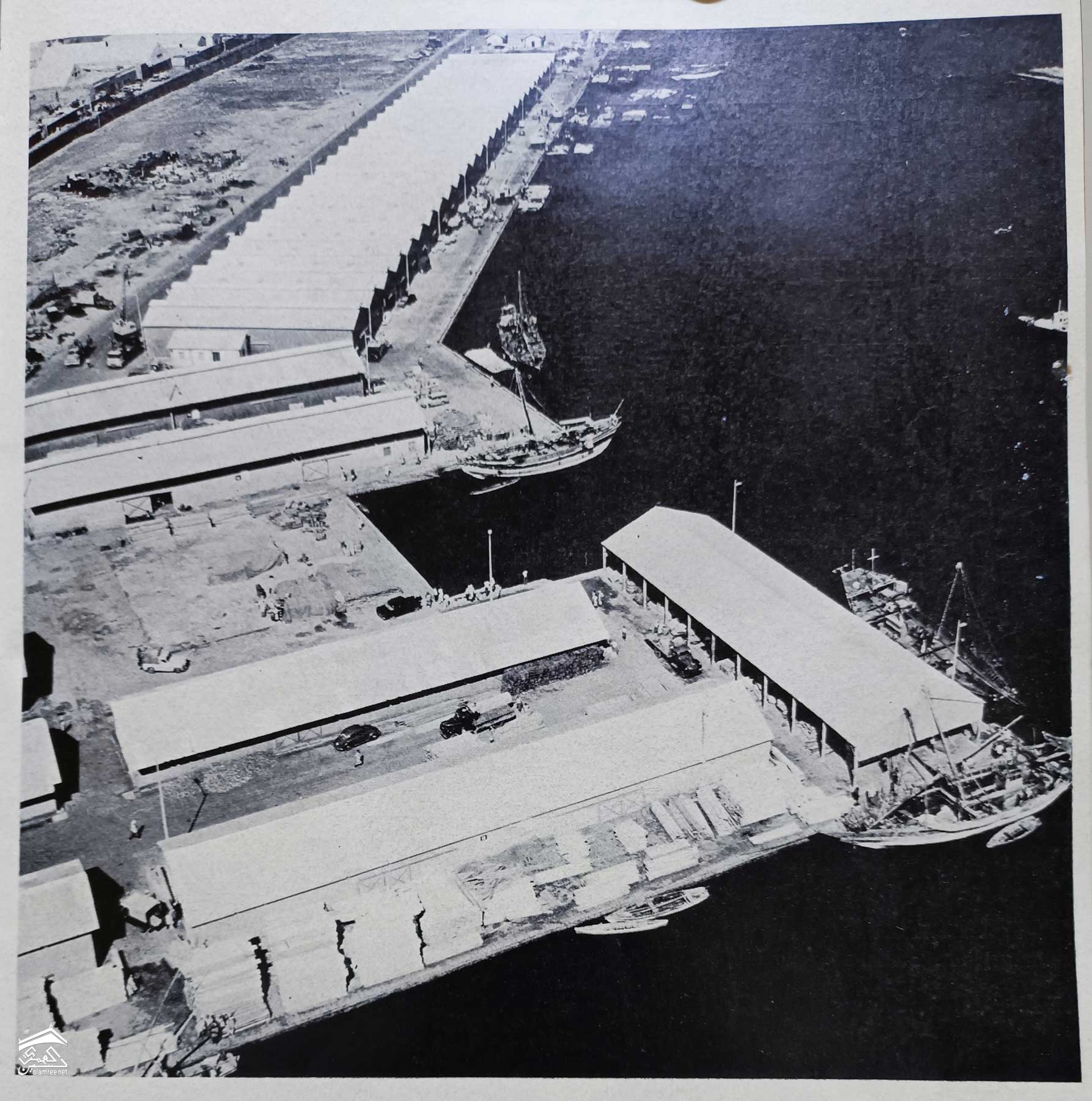 ميناء المعلا ويلاحط مخازن البضائع التي انشئت في ستينيات القرن الماضي |