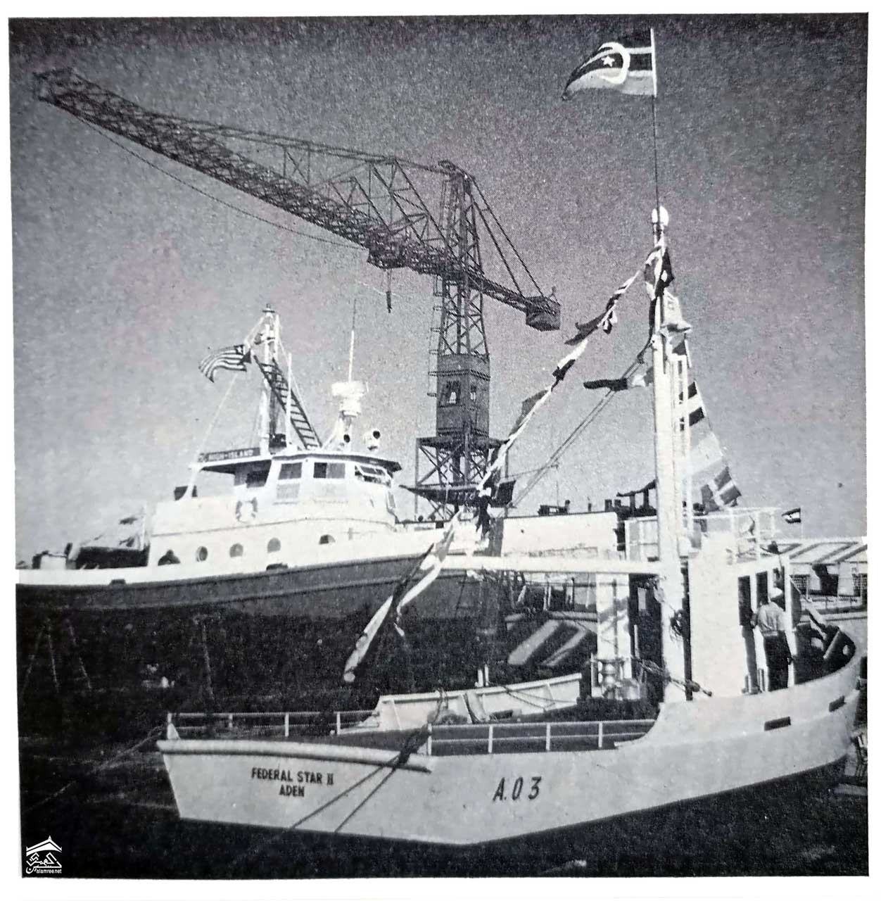 قارب يتبع موانئ اتحاد الجنوب العربي في اواخر خمسينيات القرن الماضي |