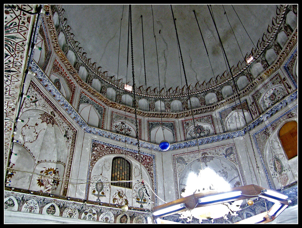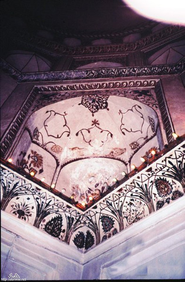صورة نادرة من داخل قبة مسجد العيدروس وهنا سقف القبه التي تحتوي على القبور في سبعينيات القرن الماضي |