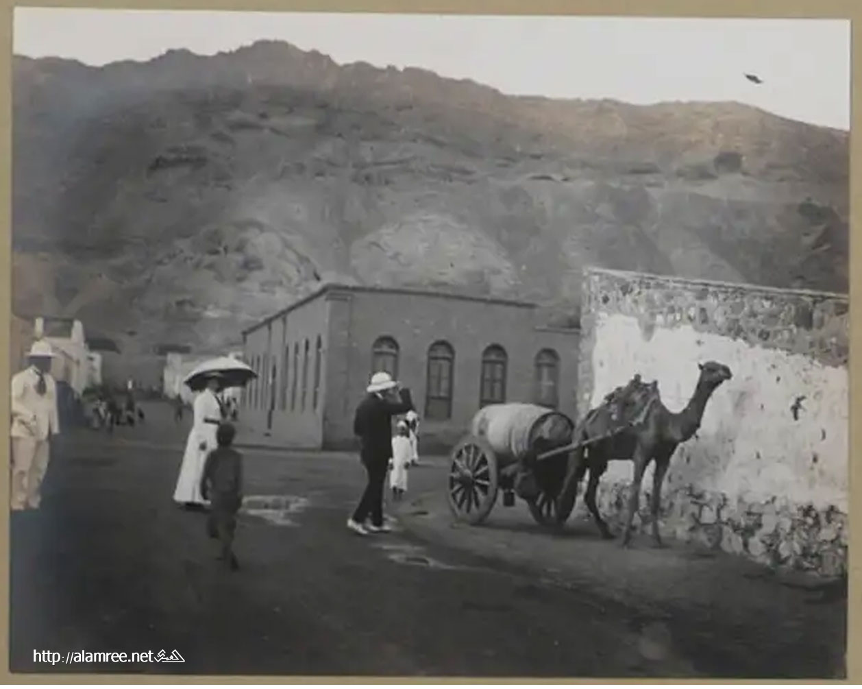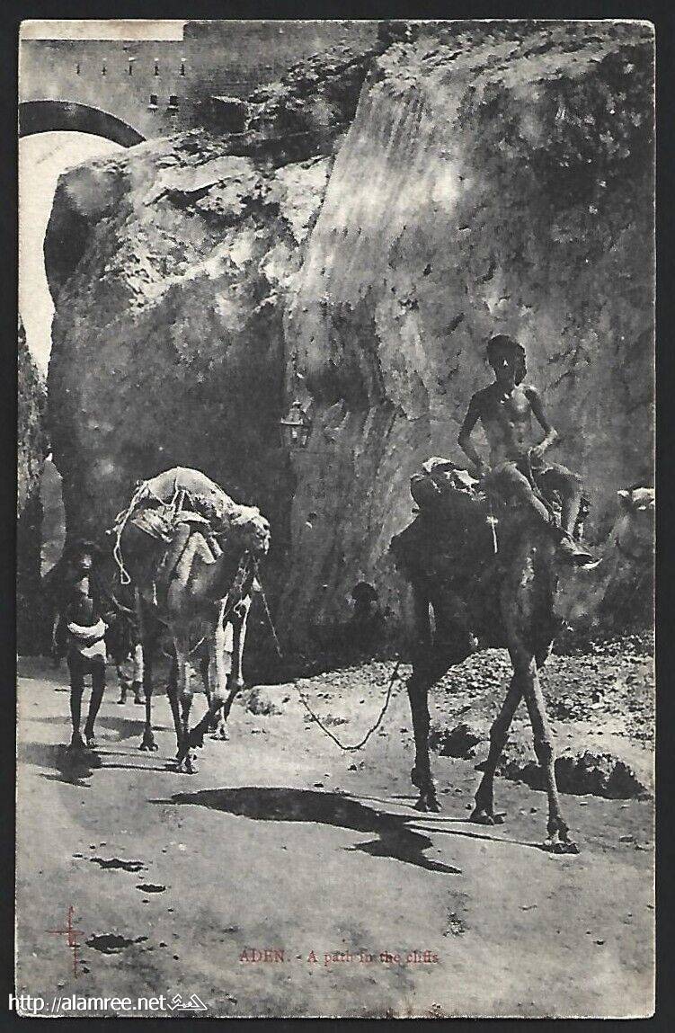 جملان خارجان من بوابة عقبة عدن باتجاه المعلا في عشرينيات القرن الماضي |