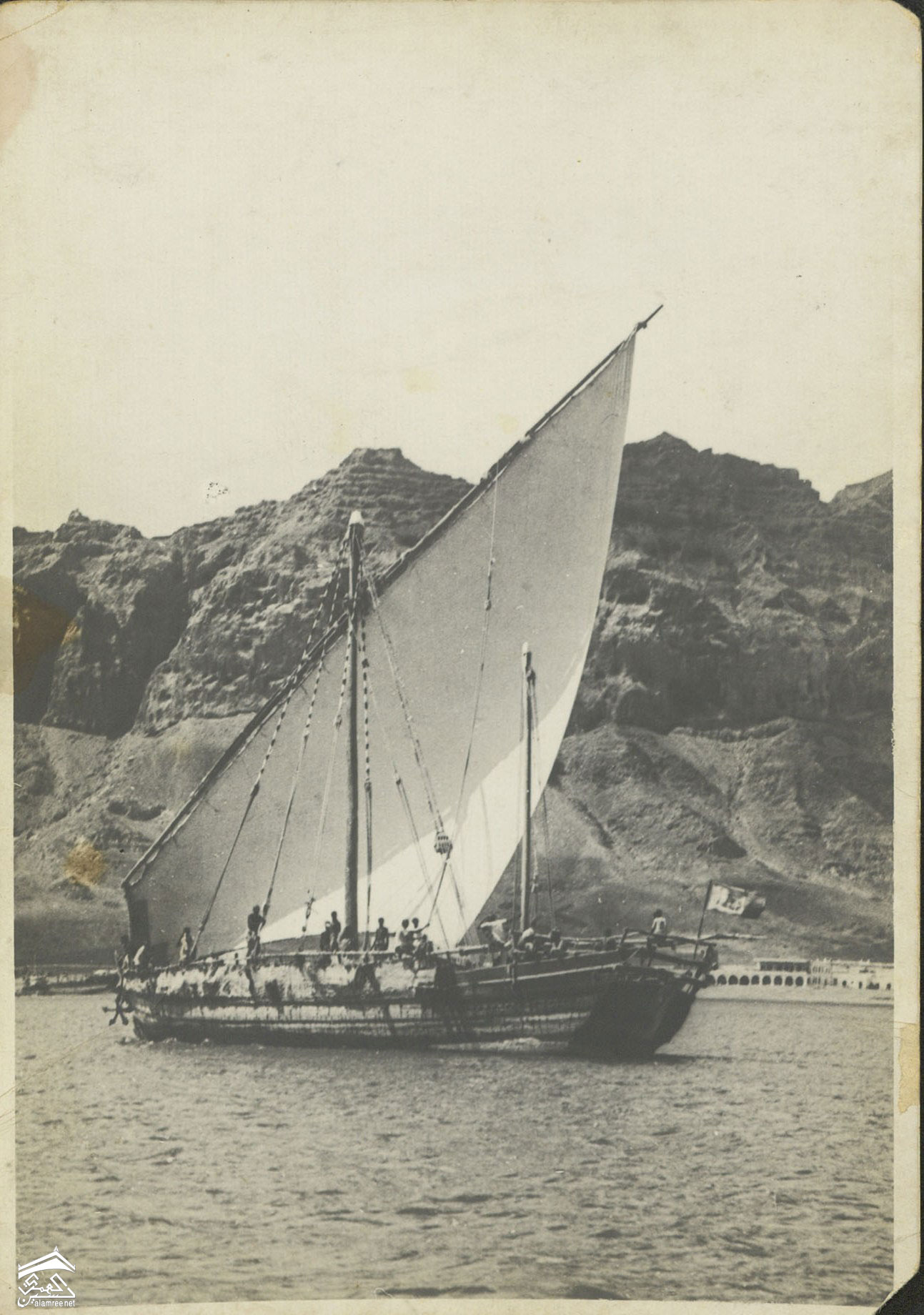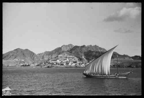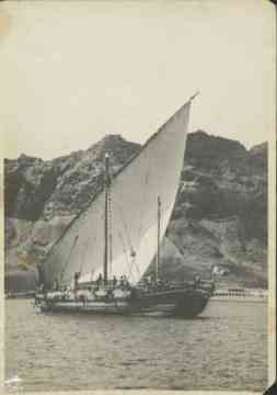 سفينة شراعية داخله ميناء عدن ثلاثينيات القرن الماضي |