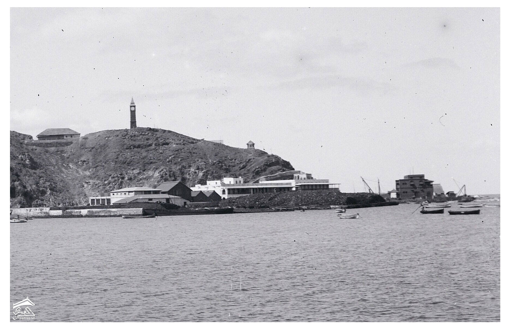 ميناء التواهي عدن وساعة برج هوج او بج بن الصغرى للمصور لوسيان تينيول عام 1896م |