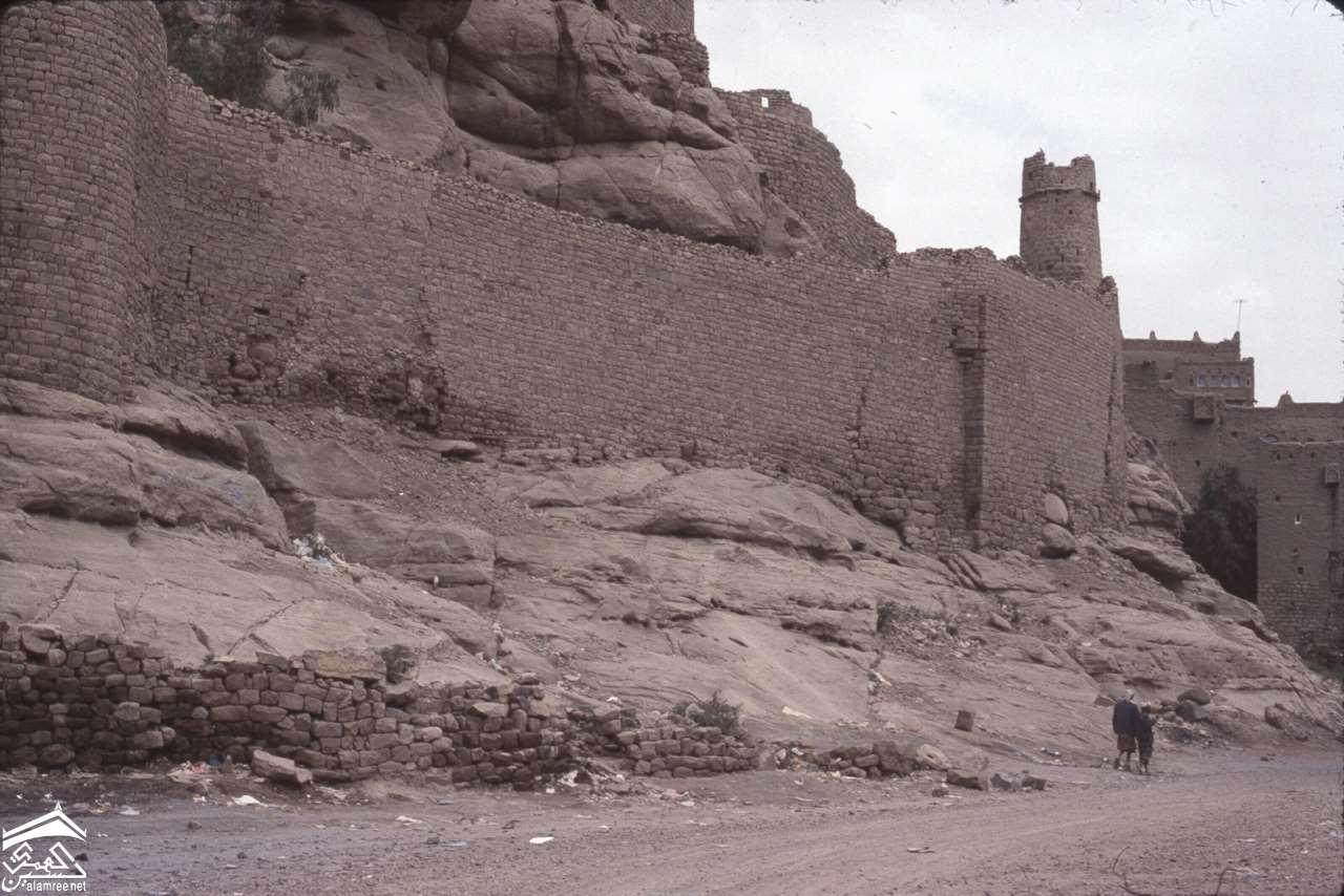 سور حجري اسفل قلعة رداع التاريخية الصورة لكلودي فاين 1969-1972م |