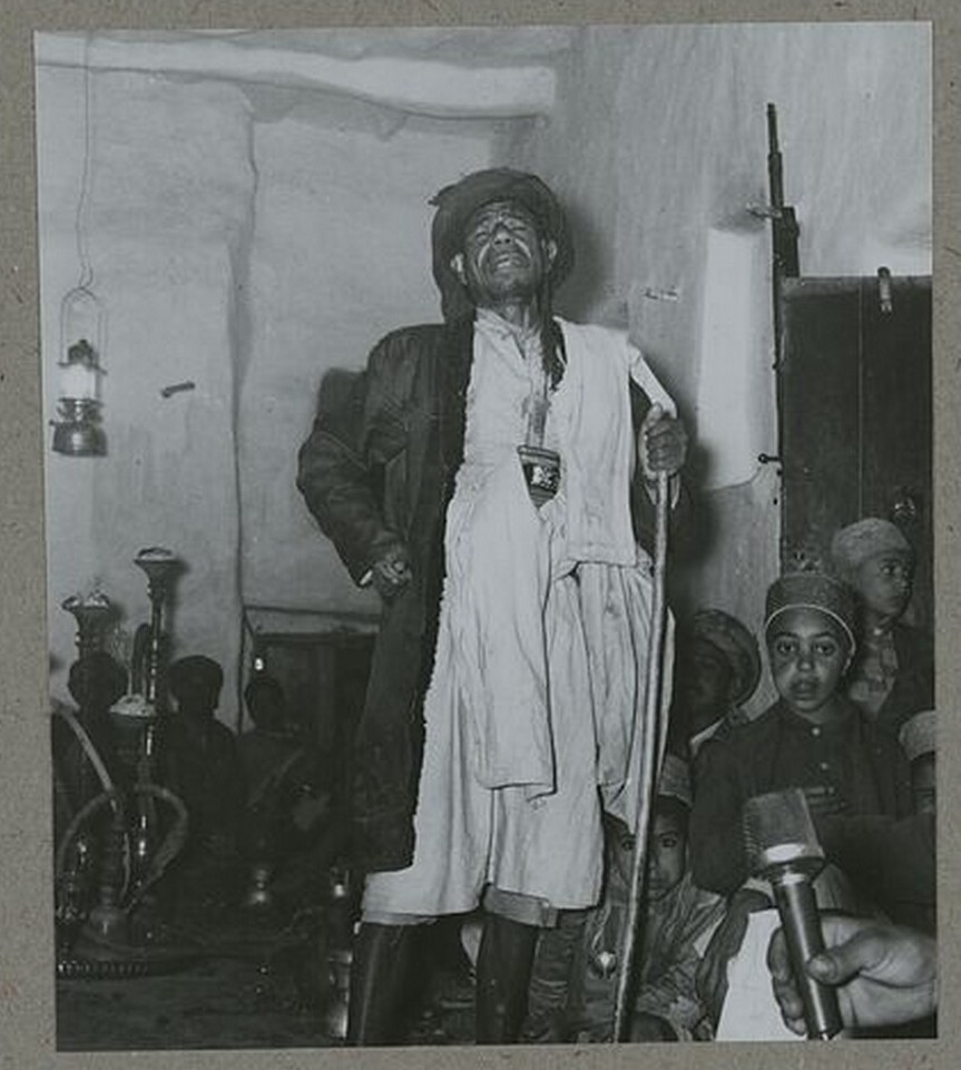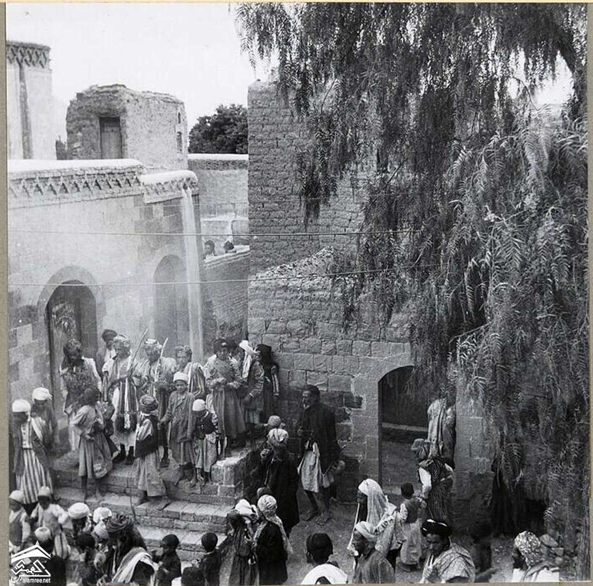 الراقصون الفلاحون وأصدقاء العريس ينتظرون خروج العروس من المسجد. الخناجر