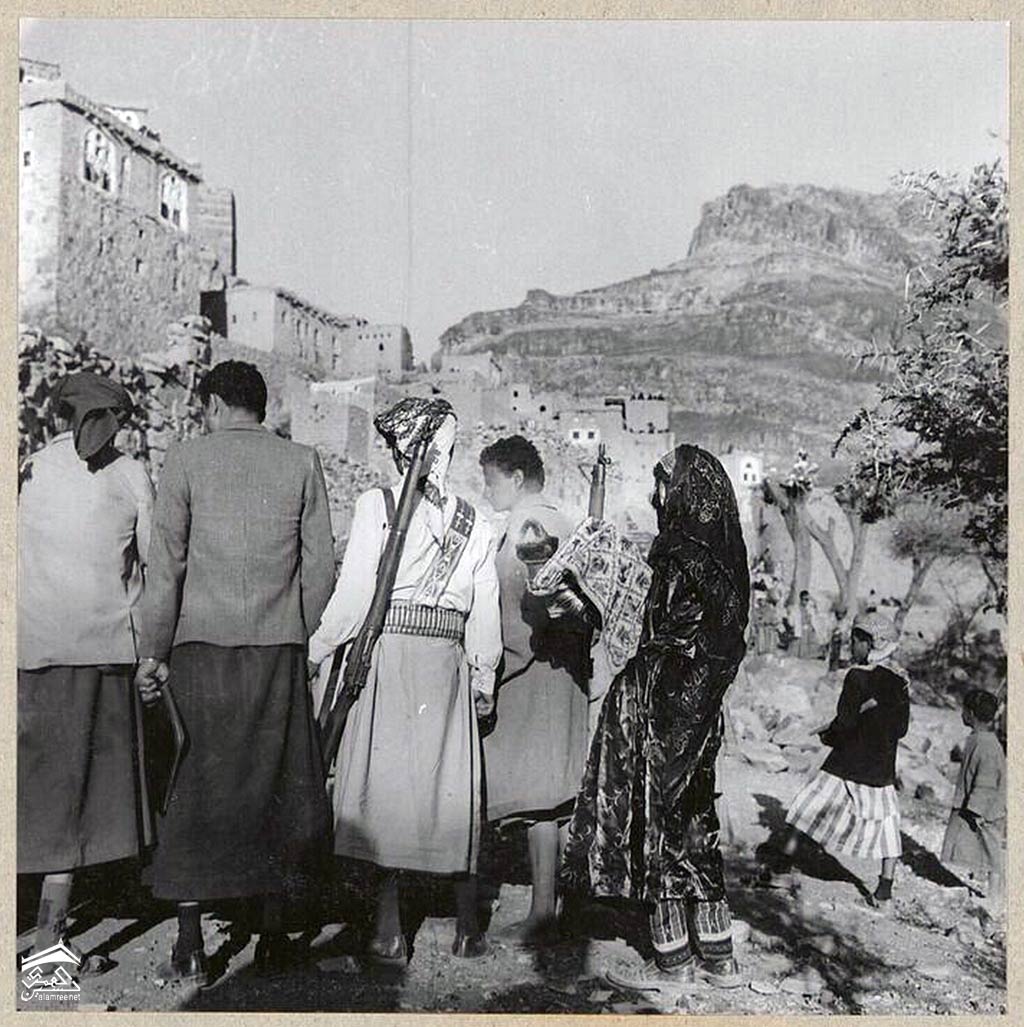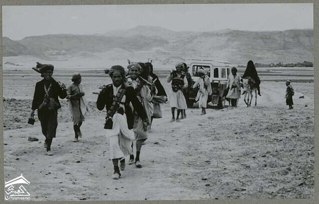 موكب العروس: رغم إدخال السيارة ، يستخدم الفلاحون اليمنيون الحمار لقيادة العروس من قريتها إلى قرية زوجها. إنه الحلاق "المزين" الذي يمسك