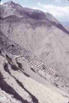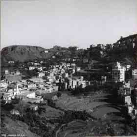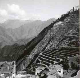 منظر عام لمدينة حجة. [الإنشاءات على الجبل والزراعات في المصاطبعام 1972 لدومنيك شامبوت]. ].