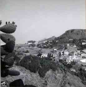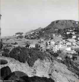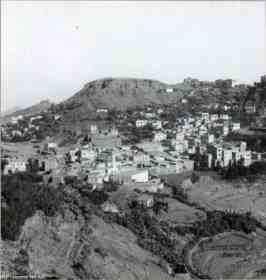 حجة. منظر للجزء الغربي من المدينة. [عمارات على جبل. الصبار في المقدمة].