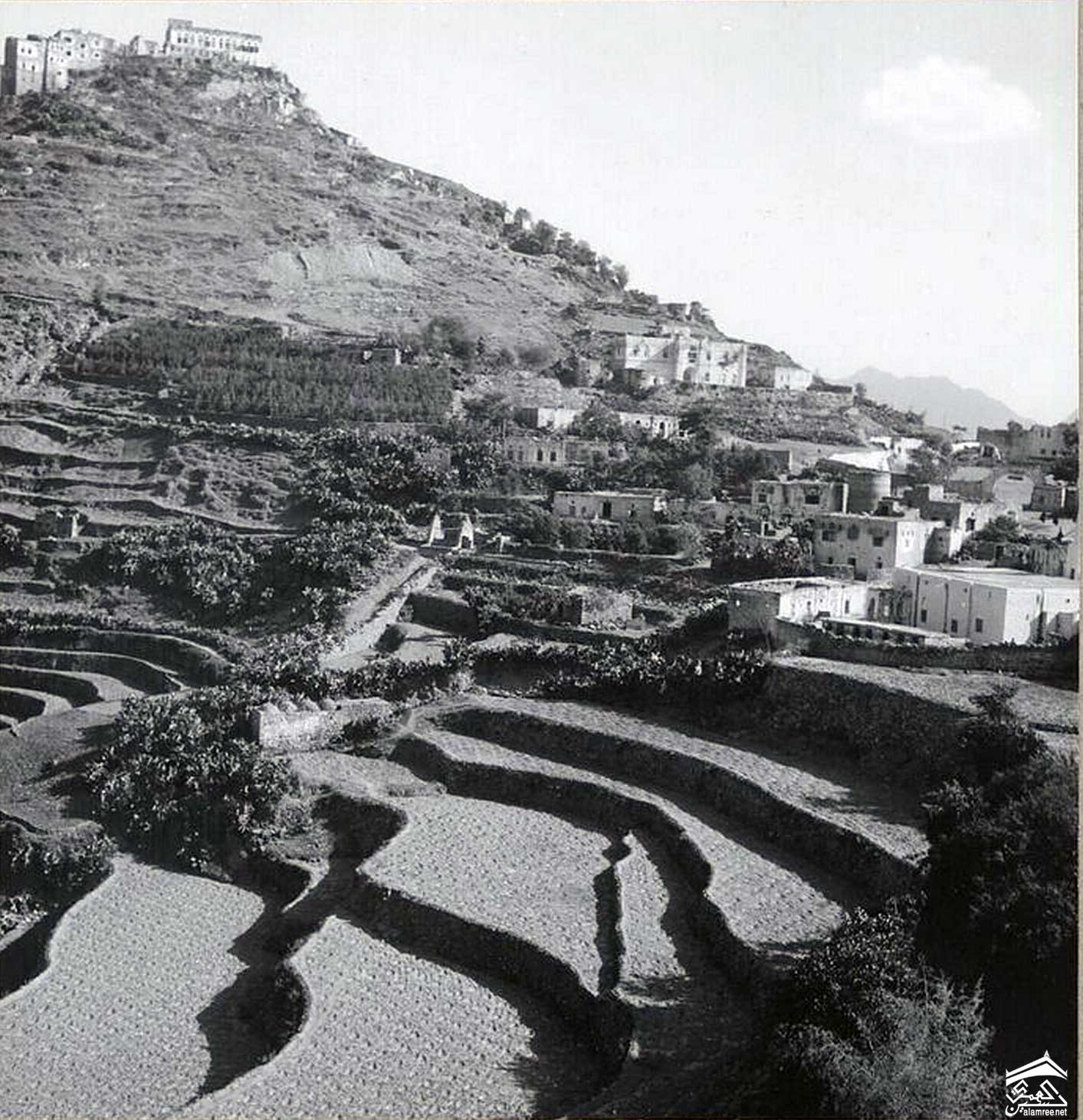 منظر عام لمدينة حجة. [الإنشاءات على الجبل والزراعات في المصاطب].