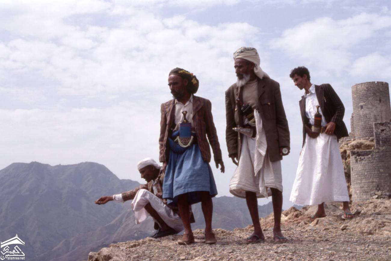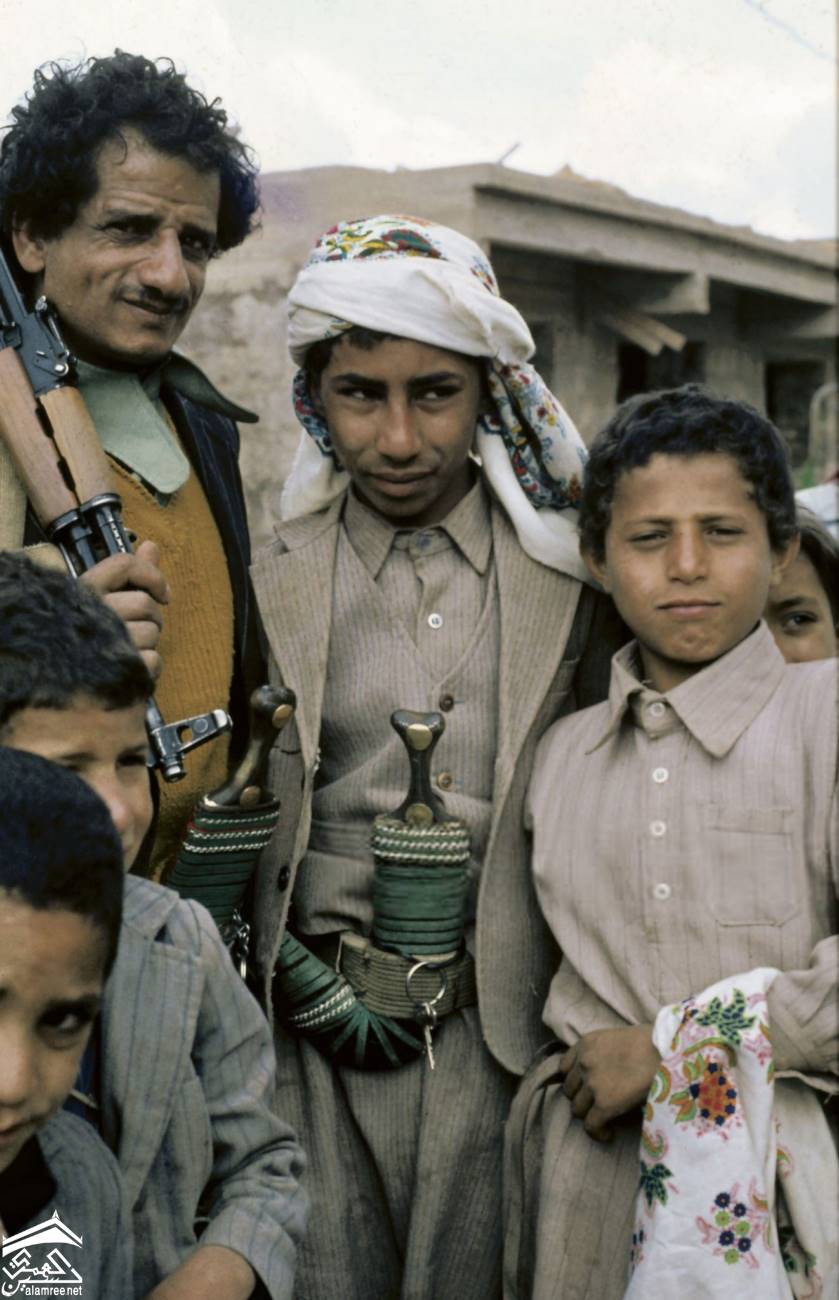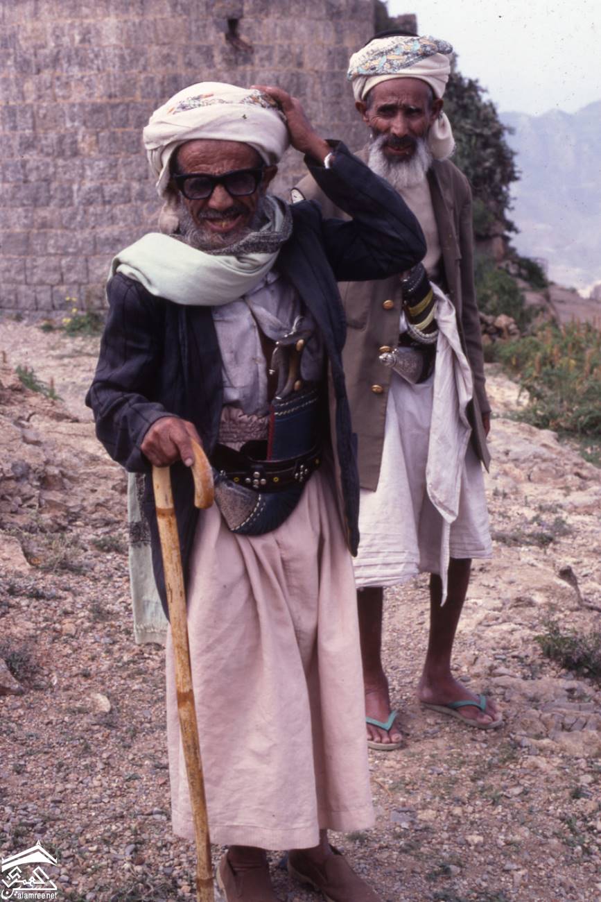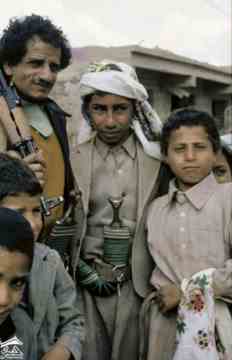 منقوشًا. وتظهر الجنبية (خنجر منحني) في