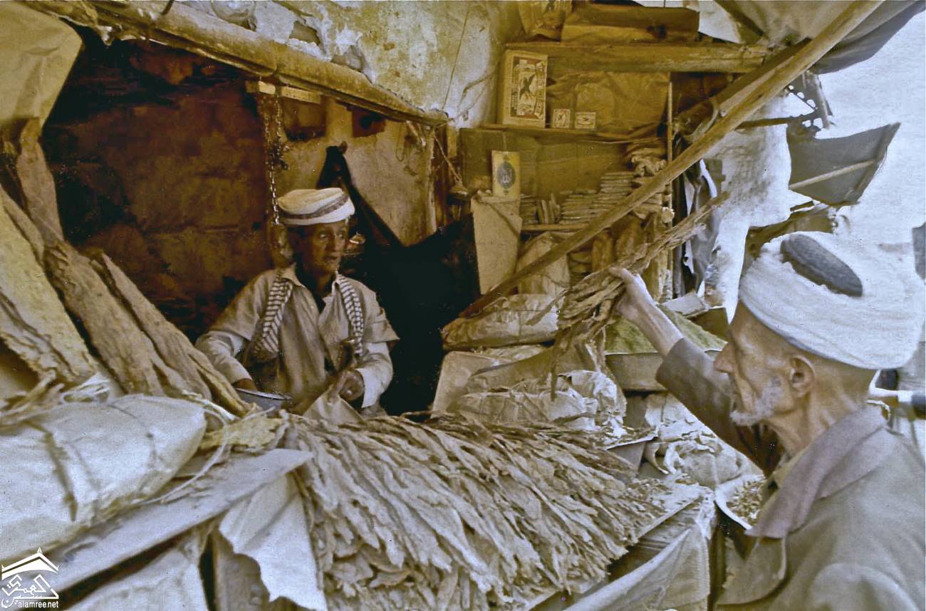 بائع "التتن" التمباك في احد اسواق صنعاء سبعينيات القرن الماضي