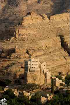 صنعاء وادي ظهر ويظهر يمين الصورة دار الحجر ويسار احدى نوبات الحراسة