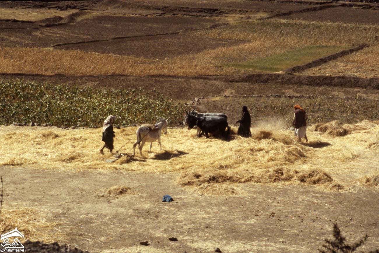 خارج صنعاء وعملية استخراج الحبوب من سنبله ثمانينيات القرن الماضي