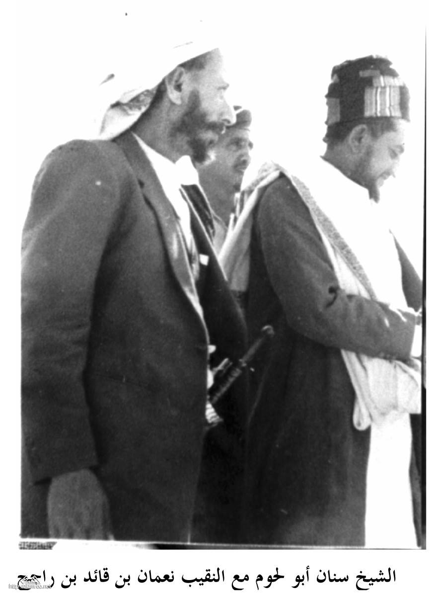 سنان ابو لحوم والنقيب محمد احمد الجباري وفي الخف الشيخ عبده حسن الفاشق |
